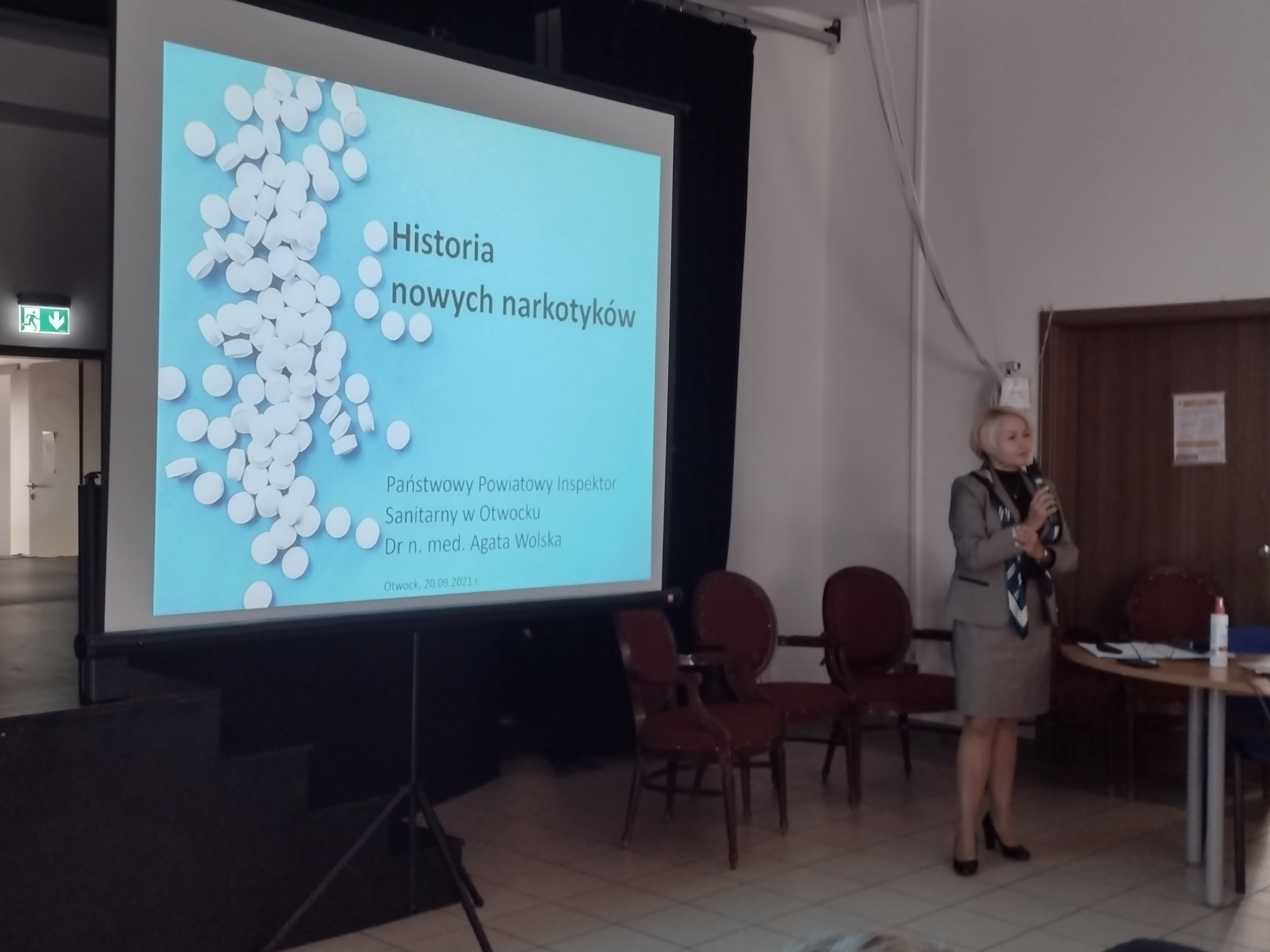 Pierwszy wykład – prezentował „Historię nowych narkotyków”, który wygłosiła Pani Agata Wolska – Państwowy Powiatowy Inspektor Sanitarny w Otwocku. Podczas wystąpienia przedstawiony został rys historyczny substancji psychoaktywnych, aspekty psychologiczne powstawania uzależnień