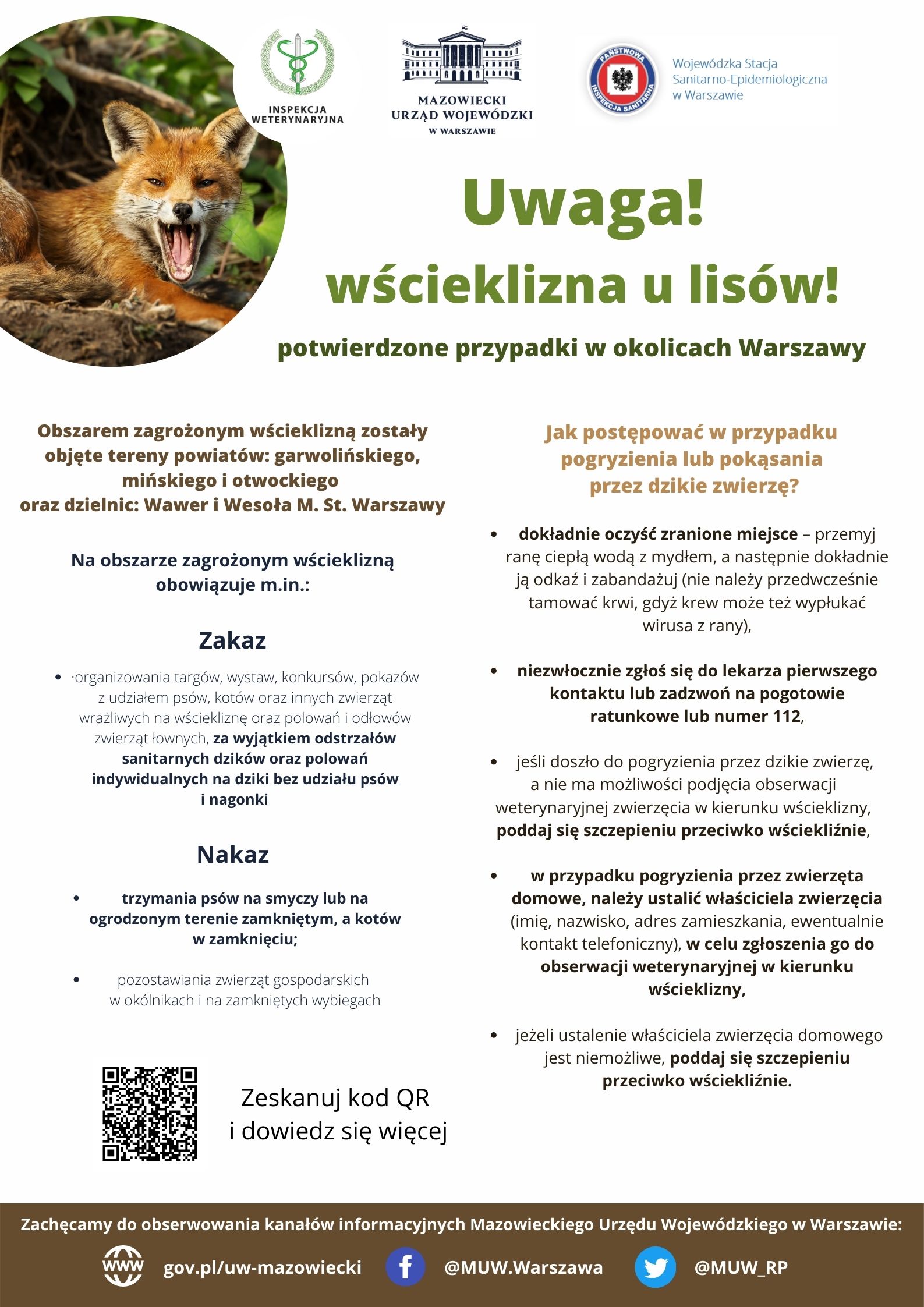Plakat "Uwaga wścieklizna u lisów" - potwierdzone przypadki w okolicach WarszawyPlakat_2.jpg 0.45MB Plakat - Zaszczep pupila, to tylko chwila