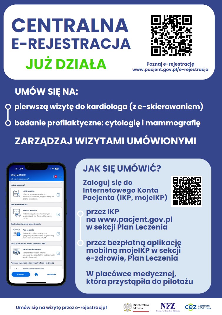 Centralna e-rejestracja to usługa umożliwiająca zapisywanie się online na badania i wizyty u specjalisty.