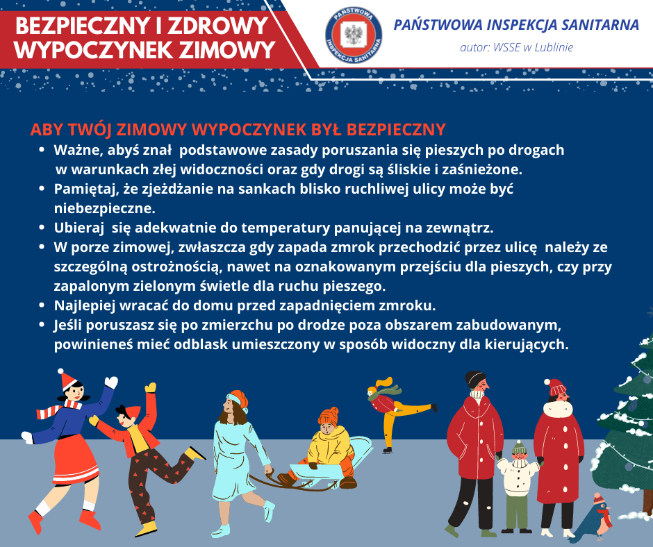 Rozpoczynają się FERIE ZIMOWE w województwie lubelskim. Dla dzieci i młodzieży to wyczekany czas odpoczynku od nauki i codziennych obowiązków. Pamiętajmy, że niezależnie od tego, czy uczniowie będą wyjeżdżać na zorganizowany wypoczynek, spędzą ferie na półkoloniach czy w domu, ważne jest zachowanie podstawowych zasad i przepisów bezpieczeństwa. Dotyczą one zarówno przemieszczania się, a także różnych form aktywności. Pamiętajmy, aby na czas zimowej beztroski nie zapominać o zasadach bezpieczeństwa!