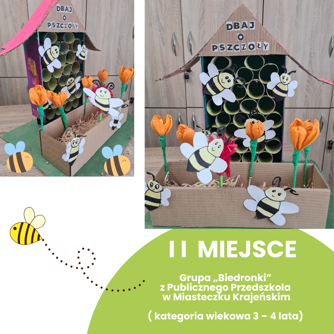 II miejsce przyznano grupie „BIEDRONKI” (kategoria wiekowa 3-4 lata) z Publicznego Przedszkola w Miasteczku Krajeńskim i grupie „ ŻABKI” (kategoria wiekowa 5 – 6 lat) z Oddziału Przedszkolnego w Grabównie. Serdecznie gratulujemy zwycięzcom! Ze względu na niezgodności regulaminowe III miejsc nie przyznano. Prace konkursowe, które zajęły I miejsce przesłane zostały na etap wojewódzki do Wojewódzkiej Stacji Sanitarno-Epidemiologicznej w Poznaniu.