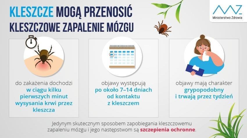 Wybierając się np. na spacer do lasu, należy pamiętać o odpowiednim okryciu ciała: długich spodniach, bluzce z rękawem, nakryciu głowy. Najlepiej, aby ubranie było jasne, wtedy łatwiej na nim zauważyć kleszcza. W zapobieganiu ukąszeniu przez kleszcza ważne jest stosowanie odpowiednich preparatów odstraszających te pajęczaki (tzw. repelentów, do kupienia w drogeriach i aptekach). Najskuteczniejszym i najbardziej efektywnym sposobem ochrony przed kleszczowym zapaleniem mózgu jest szczepienie.