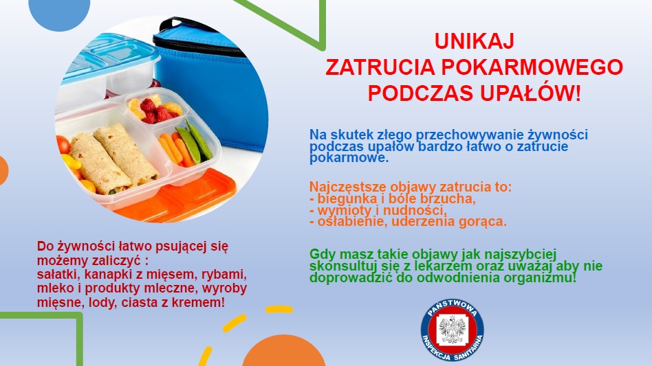 Ponadto, szczególnie w okresie letnim, konsumenci powinni zwracać uwagę na warunki przechowywania żywności w sklepach czy lokalach gastronomicznych. Szczególnie tyczy się to żywności nietrwałej mikrobiologicznie (tj. kanapki, sałatki, ciastka z kremem, wyroby mięsne i mleczne, lody, smoothies, świeżo przygotowane soki czy shake itp.), która powinna być przechowywana w urządzeniach chłodniczych. Jeśli warunki przechowywania żywności wzbudzają wątpliwości warto – dla własnego i innych bezpieczeństwa - zgłosić to do najbliższej stacji sanitarno-epidemiologicznej!