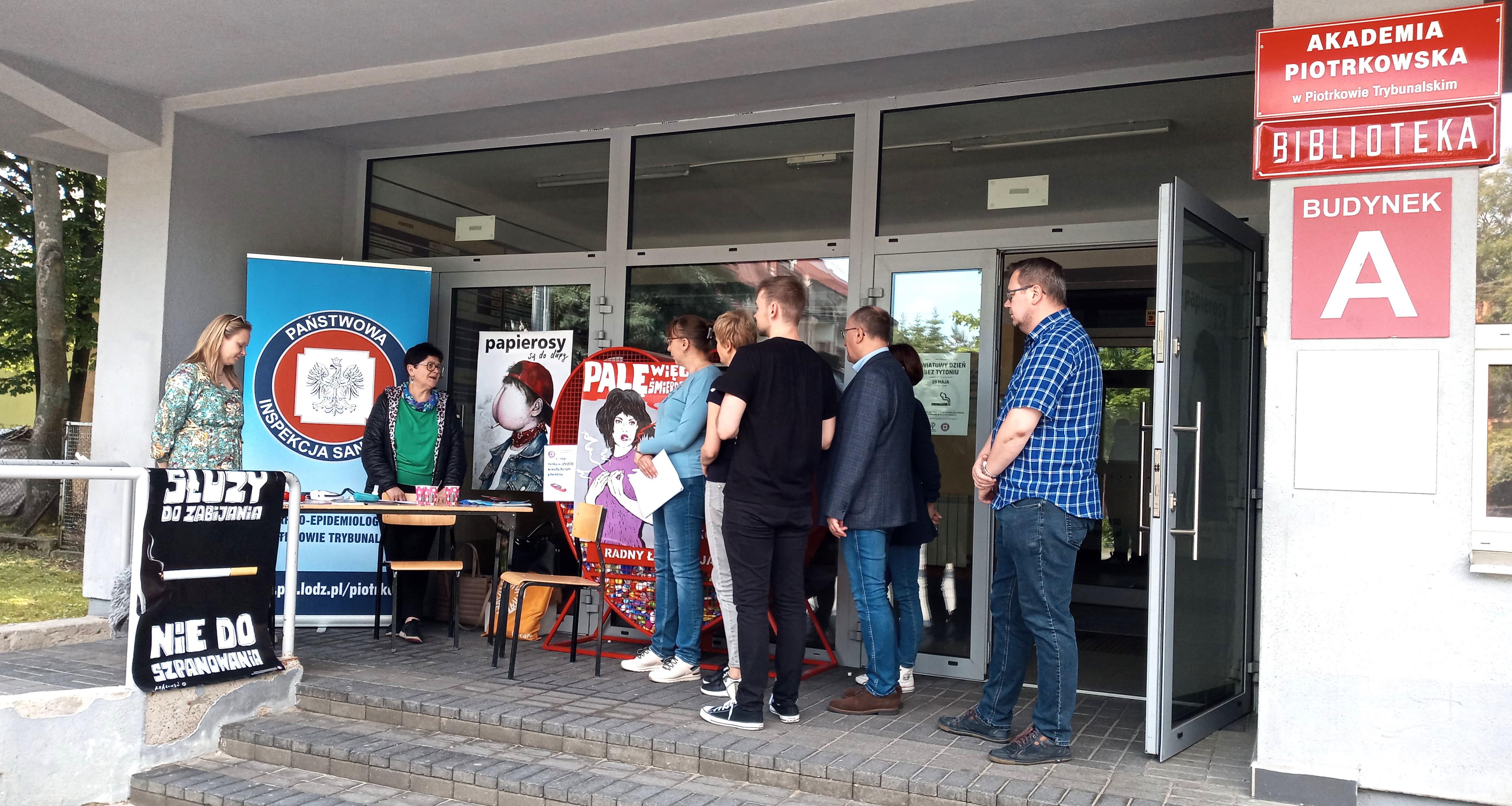 W dniu 29.05.2024r. pracownicy sekcji Promocji Zdrowia i Oświaty Zdrowotnej zorganizowali Punkt Konsultacyjny w ramach Światowego Dnia bez Tytoniu. Działania były prowadzone w Akademii Piotrkowskiej, przy ulicy Juliusza Słowackiego 114/118. W Punkcie Konsultacyjnym można było uzyskać informacje o szkodliwości palenia tytoniu na zdrowie człowieka, zasięgnąć porad jak zerwać z nałogiem, zmierzyć ciśnienie tętnicze oraz zmierzyć ilość tlenku węgla (CO) w wydychanym powietrzu.