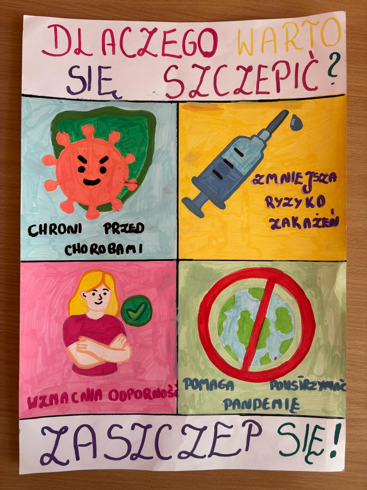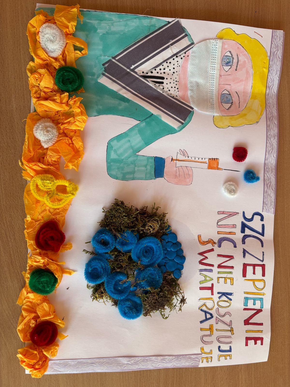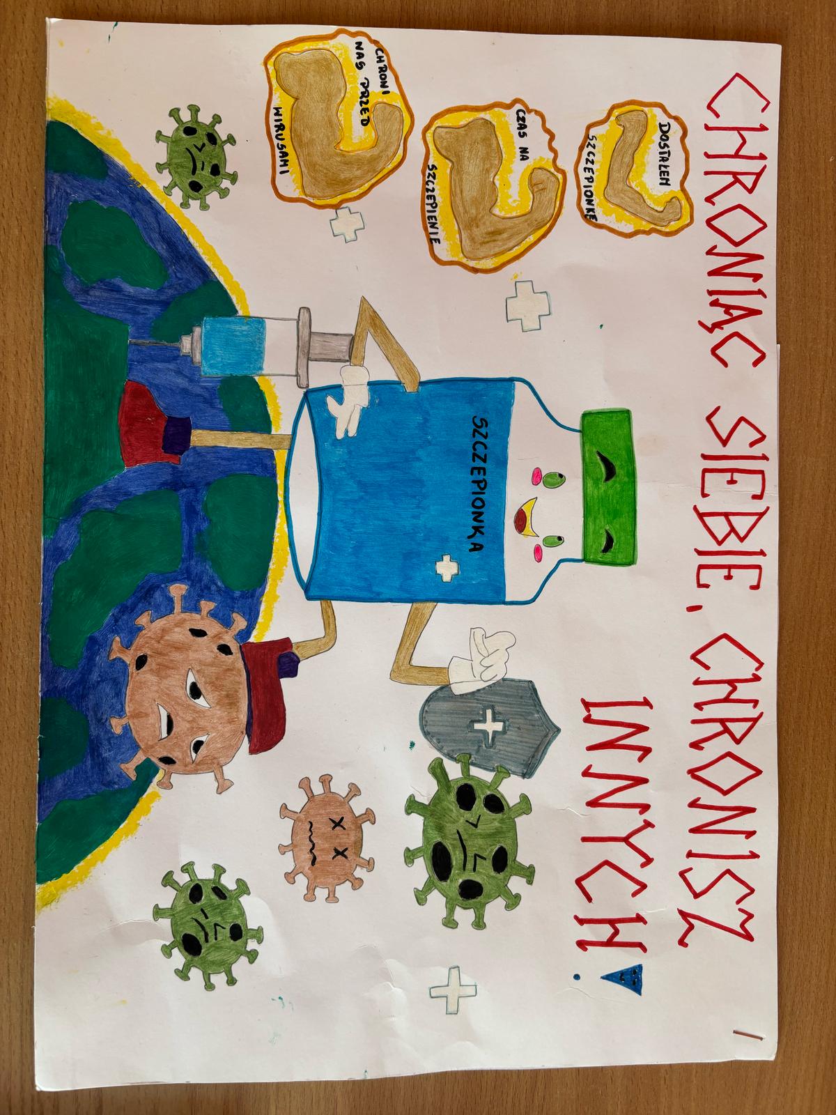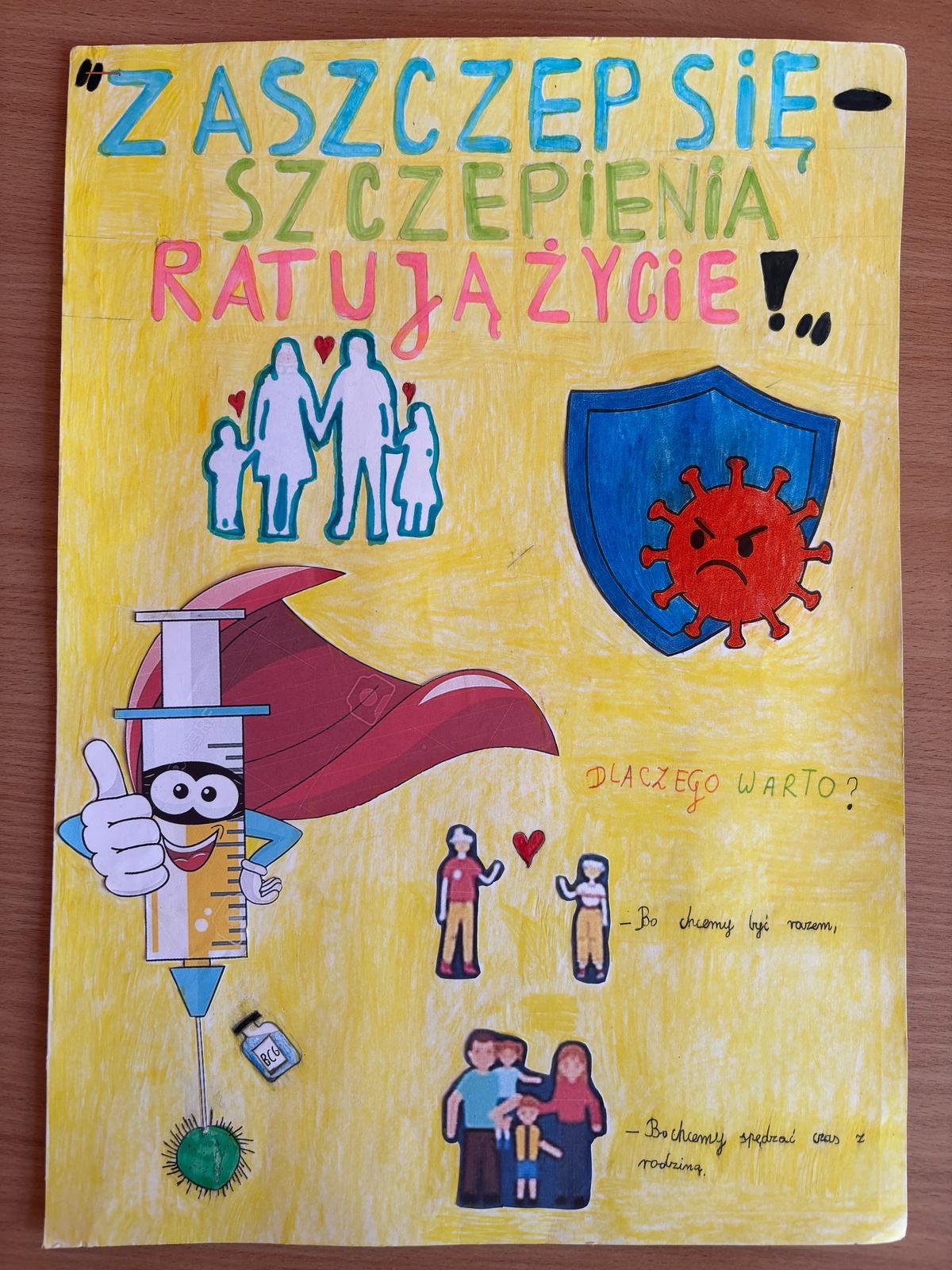 Podsumowanie konkursu plastycznego na plakat z hasłem promującym szczepienia ochronne.
