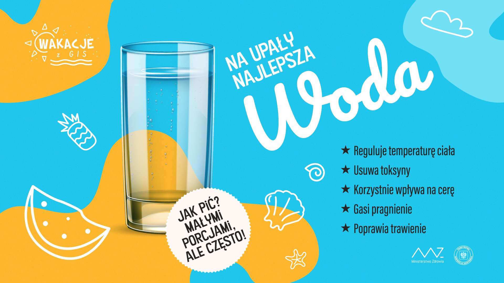 Nasze ciało składa się w około 70 procentach z wody, którą szybko tracimy szczególnie latem. Woda jest niezbędna do prawidłowego funkcjonowania wszystkich komórek naszego ciała. Nasz organizm nie umie trzymać wody „na zapas”, bez wody potrafi przeżyć zaledwie kilka dni. Dlatego tak ważne jest jej regularne picie w małych porcjach – w ciągu całego dnia. Nawet wtedy, gdy nie czujemy pragnienia.