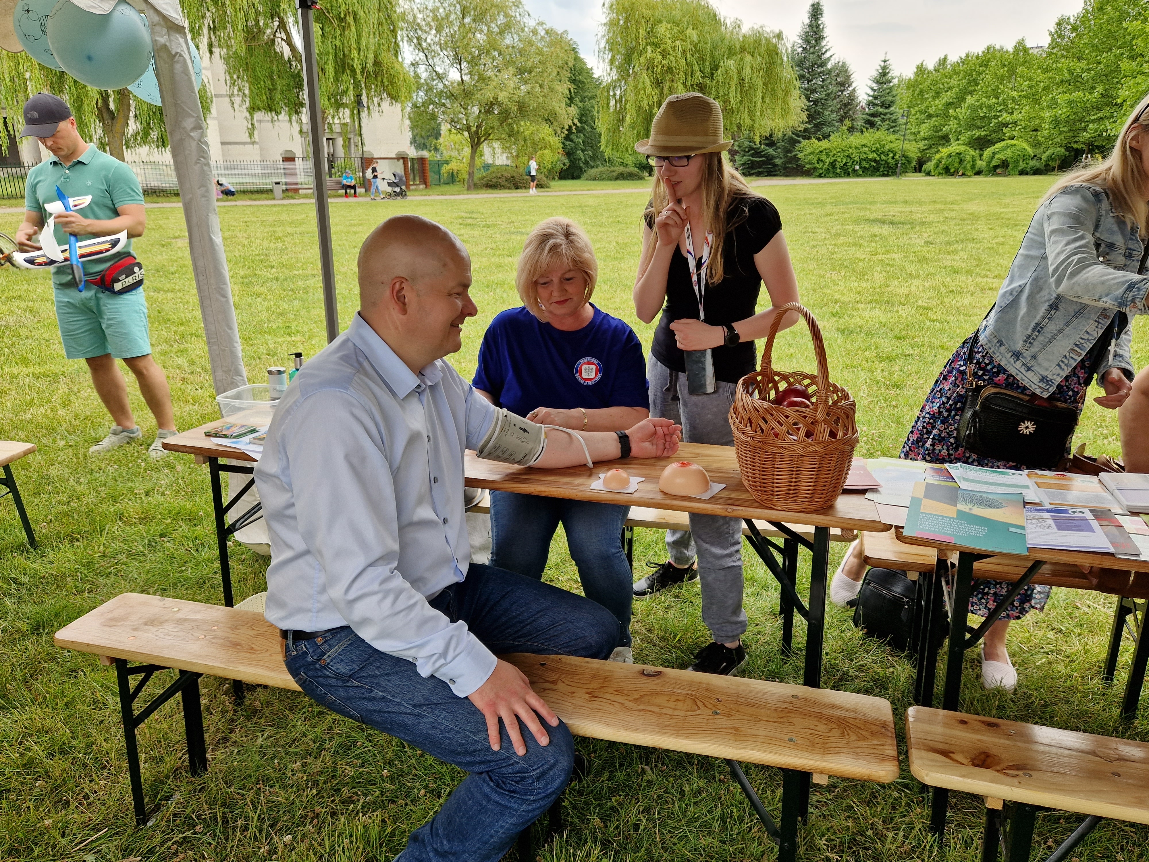 Przygotowaliśmy stoisko profilaktyczno-informacyjne, na którym prowadzone były pomiary: ciśnienia krwi, dwutlenku węgla w wydychanym powietrzu. Udzielana porad w zakresie: zdrowego i higienicznego stylu życia, zdrowego odżywiania, chorób cywilizacyjnych, chorób pasożytniczych, chorób zawodowych itd.