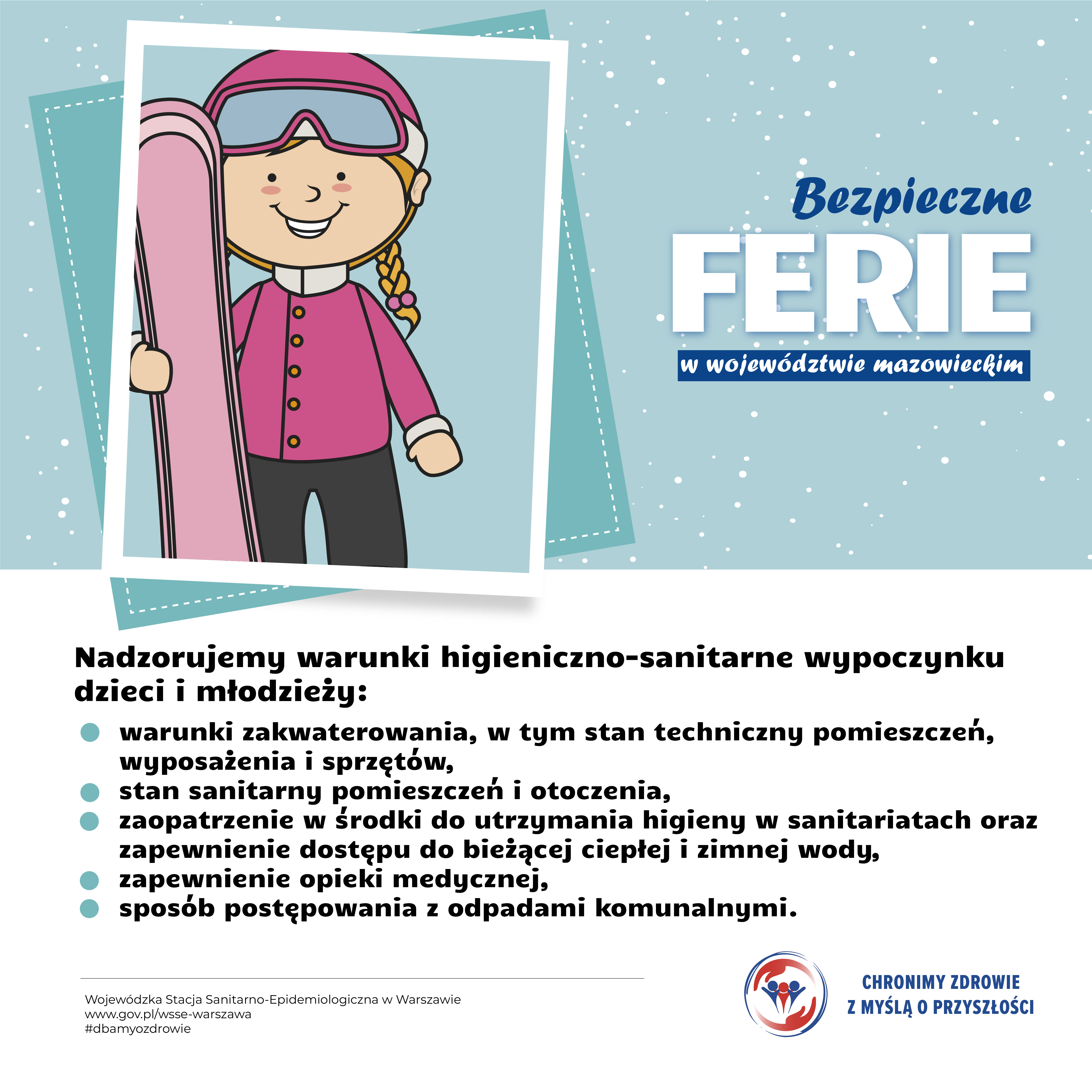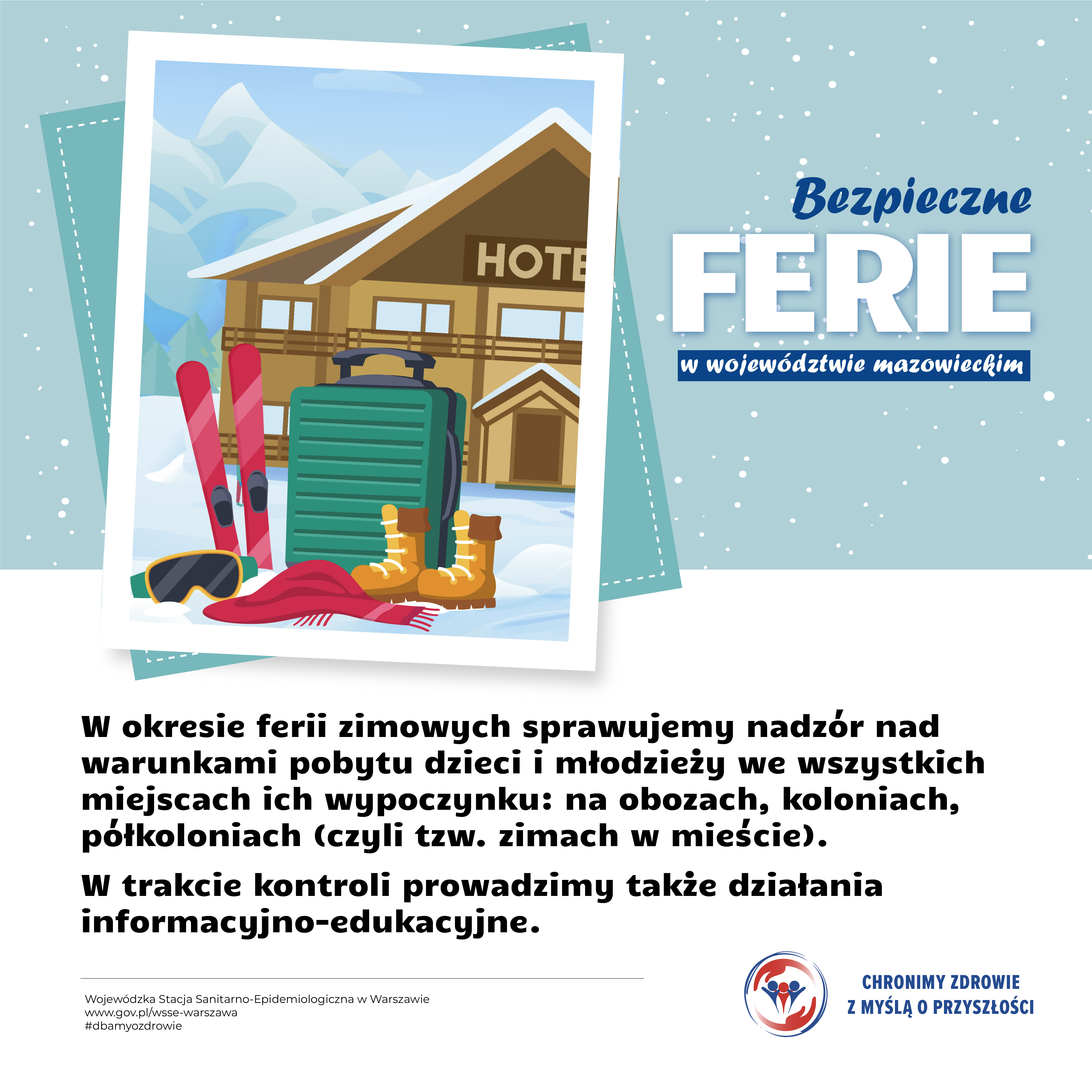 W województwie mazowieckim trwają ferie zimowe. To oczywiście czas wypoczynku dzieci i młodzieży, ale również okres, w którym szczególnie istotne jest bezpieczeństwo zdrowotne. W związku z tym Państwowa Inspekcja Sanitarna prowadzi na terenie woj. mazowieckiego wzmożone działania nadzorcze, profilaktyczne i edukacyjne w ramach akcji „Bezpieczne ferie”.