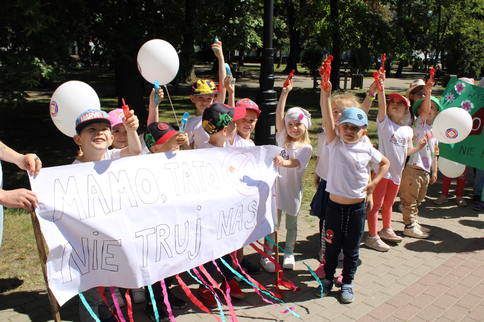 Dzieci z przedszkoli Nr 1,3,4,5, Kangurek i Mali Giganci z Płońska, przemaszerowały ulicami miasta, skandując hasła dotyczące szkodliwości palenia papierosów. Kulminacyjnym punktem happeningu było spotkanie Panią Starostą Elżbietą Wiśniewska Starostwo Powiatowe w Płońsku oraz z Panem Burmistrzem Andrzejem Pietrasikiem Urząd Miejski Płońsk, podczas którego