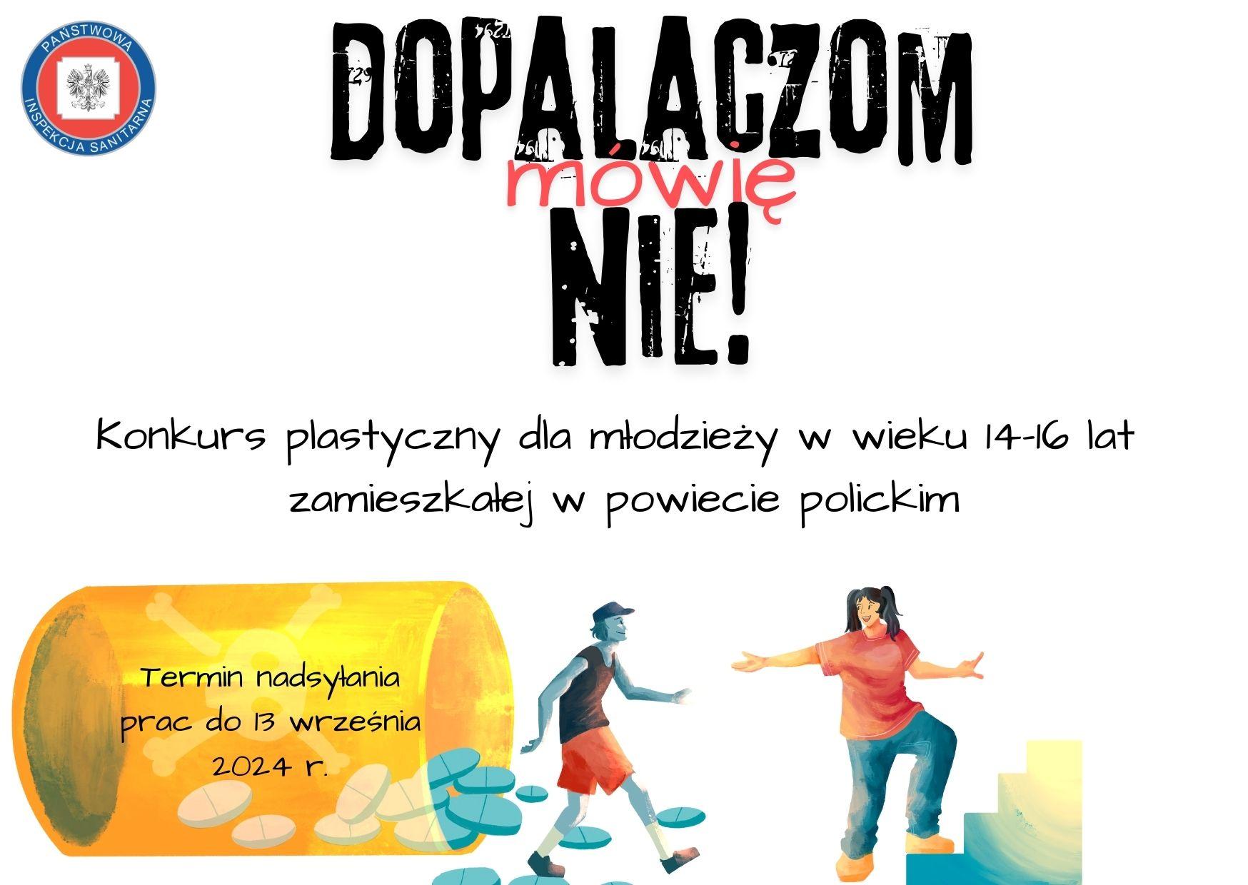 Państwowy Powiatowy Inspektor Sanitarny w Policach zaprasza młodzież w wieku 14-16 lat zamieszkującą na terenie powiatu polickiego do udziału w konkursie plastycznym w ramach akcji „Nowe Narkotyki” pod hasłem „Dopalaczom mówię NIE!”.