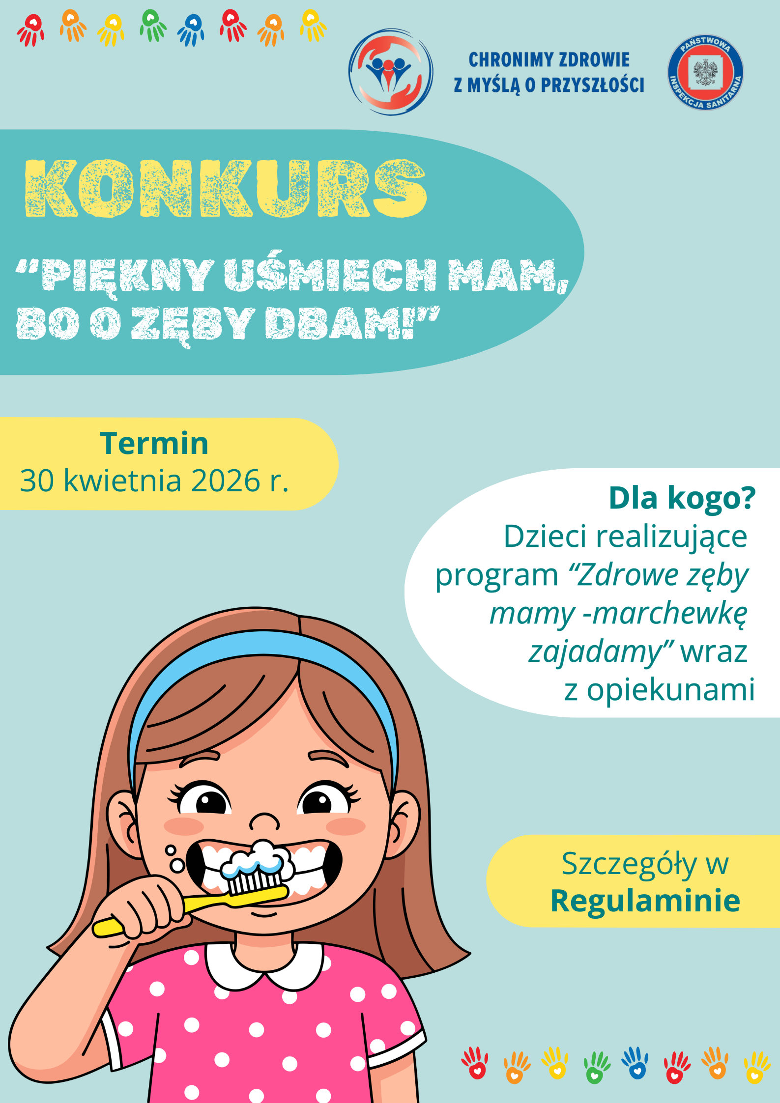 Regulamin Piękny uśmiech mam, bo o zęby dbam 2026Regulamin.pdf 0.39MB Karta zgłoszenia konkurs Piękny uśmiech mam, bo o zęby dbam 2026