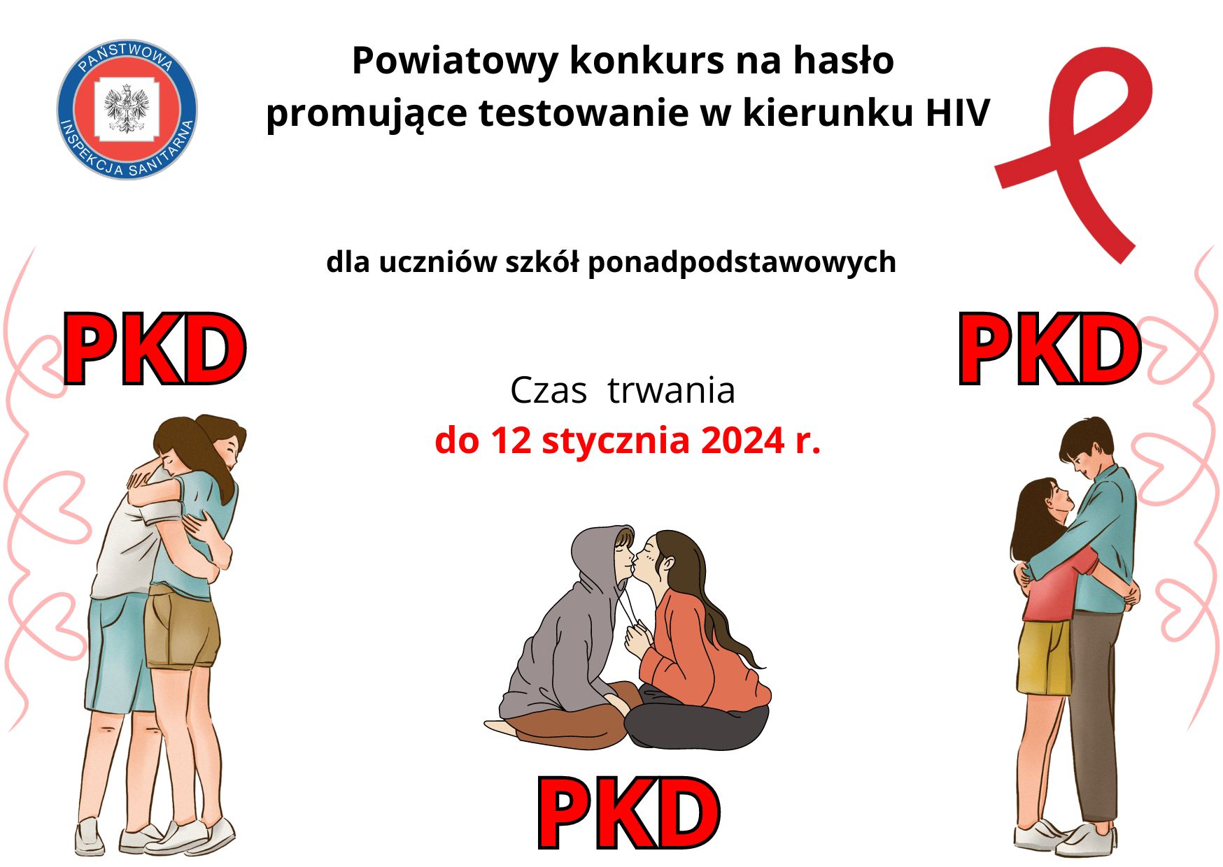 Państwowy Powiatowy Inspektor Sanitarny w Policach w związku z obchodami Światowego Dnia AIDS, który co roku przypada na dzień 1 grudnia, serdecznie zaprasza uczniów szkół ponadpodstawowych z terenu powiatu polickiego do udziału w powiatowym konkursie na hasło promujące bezpłatne testowanie w kierunku HIV. Konkurs organizowany jest w ramach Krajowego Programu Zwalczania AIDS i Zapobiegania Zakażeniom HIV.