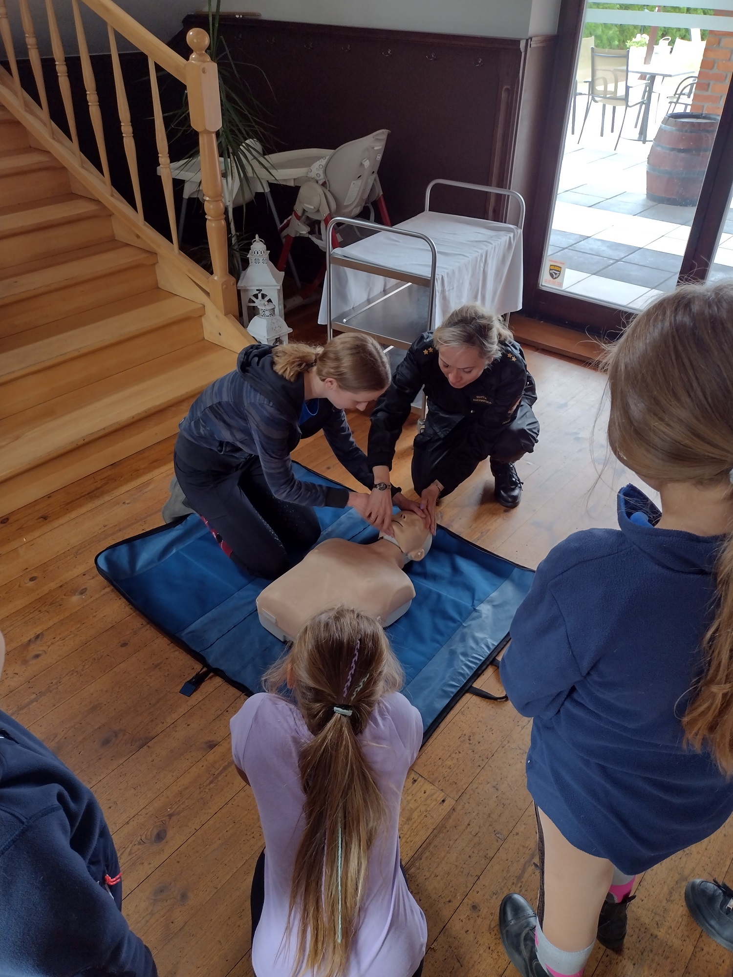 Na zajęciach wspólnie z dziećmi i młodzieżą powtarzaliśmy zasady bezpiecznego spędzania czasu wolnego na kąpielisku, podczas górskich wędrówek, w lesie, w domu i na podwórku. W czasie akcji omawialiśmy zasady zdrowego stylu życia – zdrowe odżywianie, aktywność fizyczna, profilaktykę chorób odkleszczowych. Poruszano problematykę zażywania substancji psychoaktywnych i wyrobów tytoniowych przez osoby młode. W tym celu policjanci pokazywali młodzieży walizkę narkotykową, zawierającą materiały poglądowe (m.in. nowe narkotyki). Najstarsi mieli okazję wypróbować narko- i alko gogle, jako symulację zażywania używek. Co więcej, dzieci miały szansę utrwalić zasady udzielania pierwszej pomocy przedmedycznej. Służył do tego fantom, na którym funkcjonariusz ze Straży Pożarnej robiła instruktaż. Chętne dzieci mogły podejść i spróbować swoich sił w udzielaniu pomocy osobie poszkodowanej. W zajęciach uczestniczyło około 400 osób.