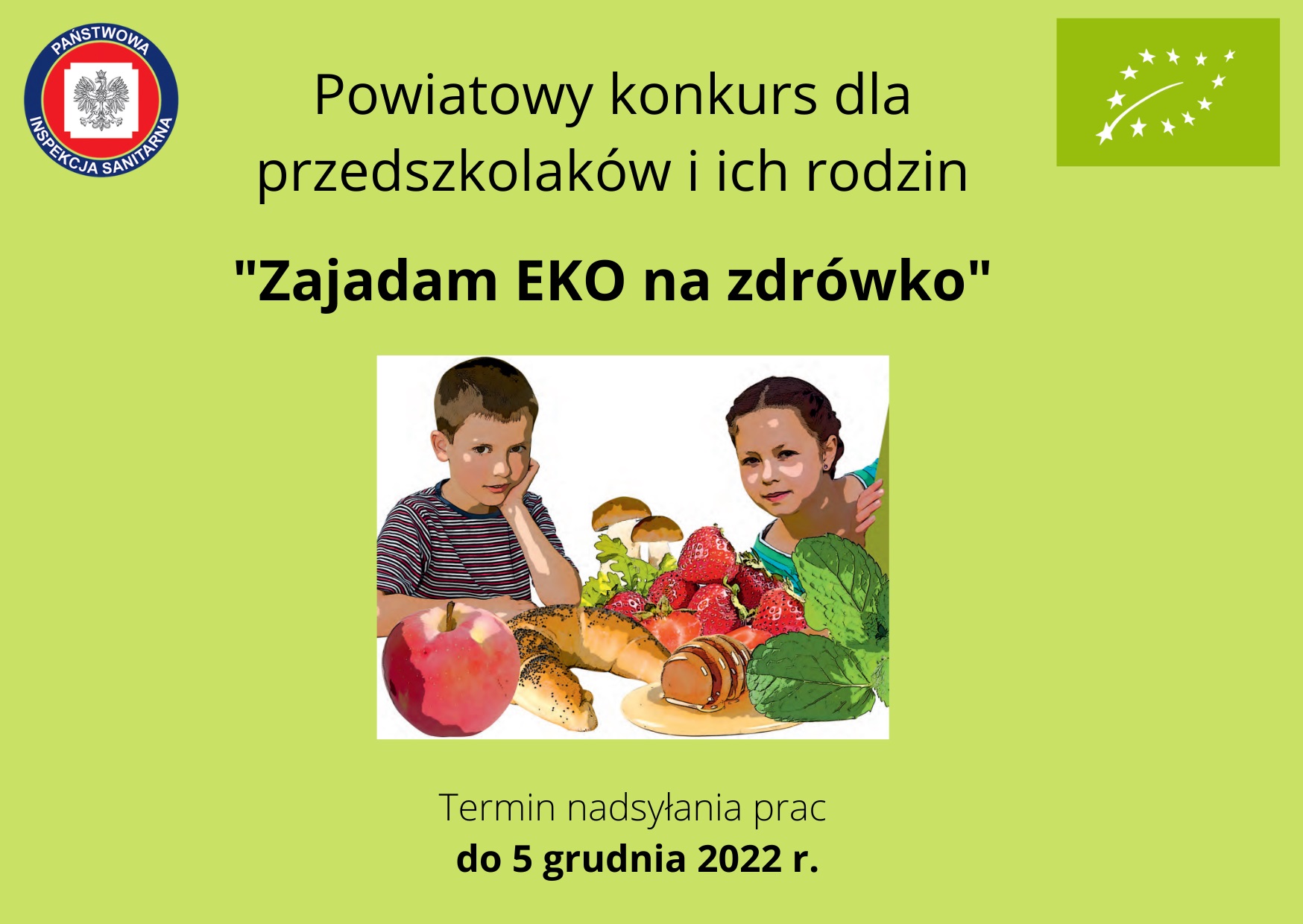 Państwowy Powiatowy Inspektor Sanitarny w Policach zaprasza przedszkolaki realizujące program "Skąd się biorą produkty ekologiczne" wraz z rodzinami do udziału w konkursie fotograficznym pod hasłem "Zajadam EKO na zdrówko".