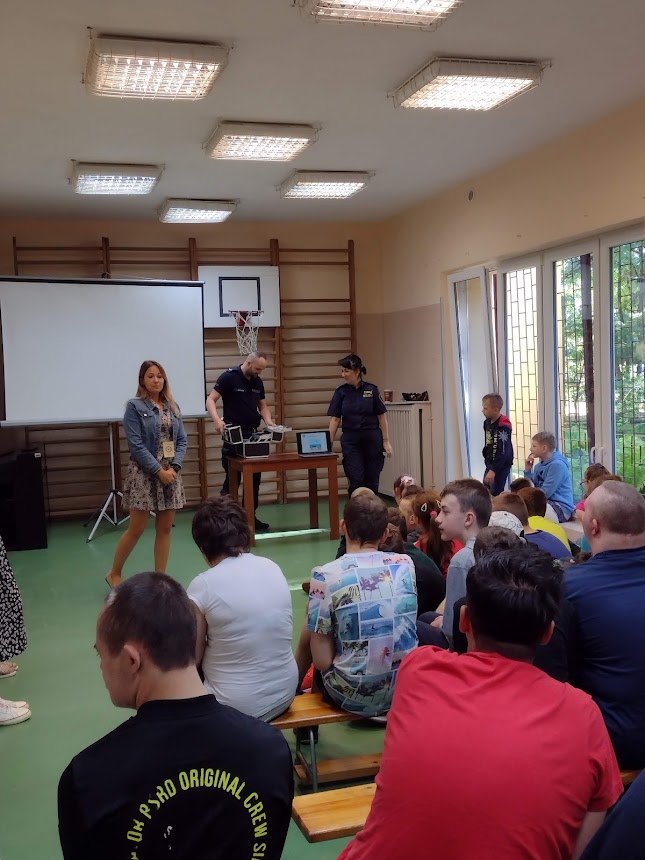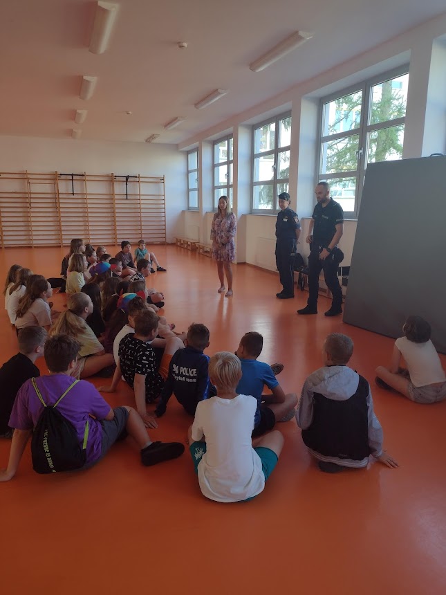 Promotor zdrowia z Powiatowej Stacji Sanitarno-Epidemiologicznej w Policach wraz z przedstawicielami służb mundurowych: Straży Miejskiej w Policach, Komendy Powiatowej Policji w Policach oraz Komendy Powiatowej Państwowej Straży Pożarnej w Policach w ostatnim tygodniu przed wakacjami odwiedzili dzieci i młodzież uczęszczające do: