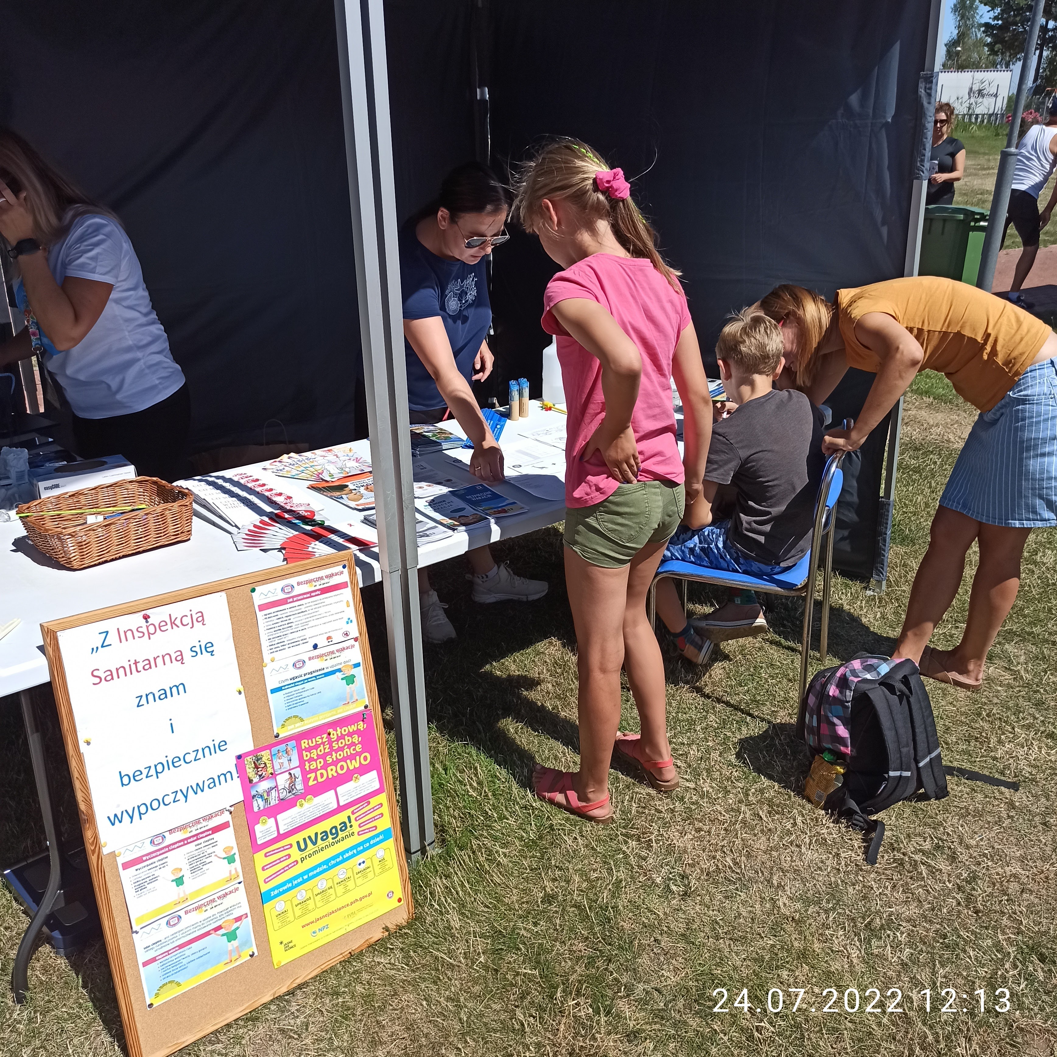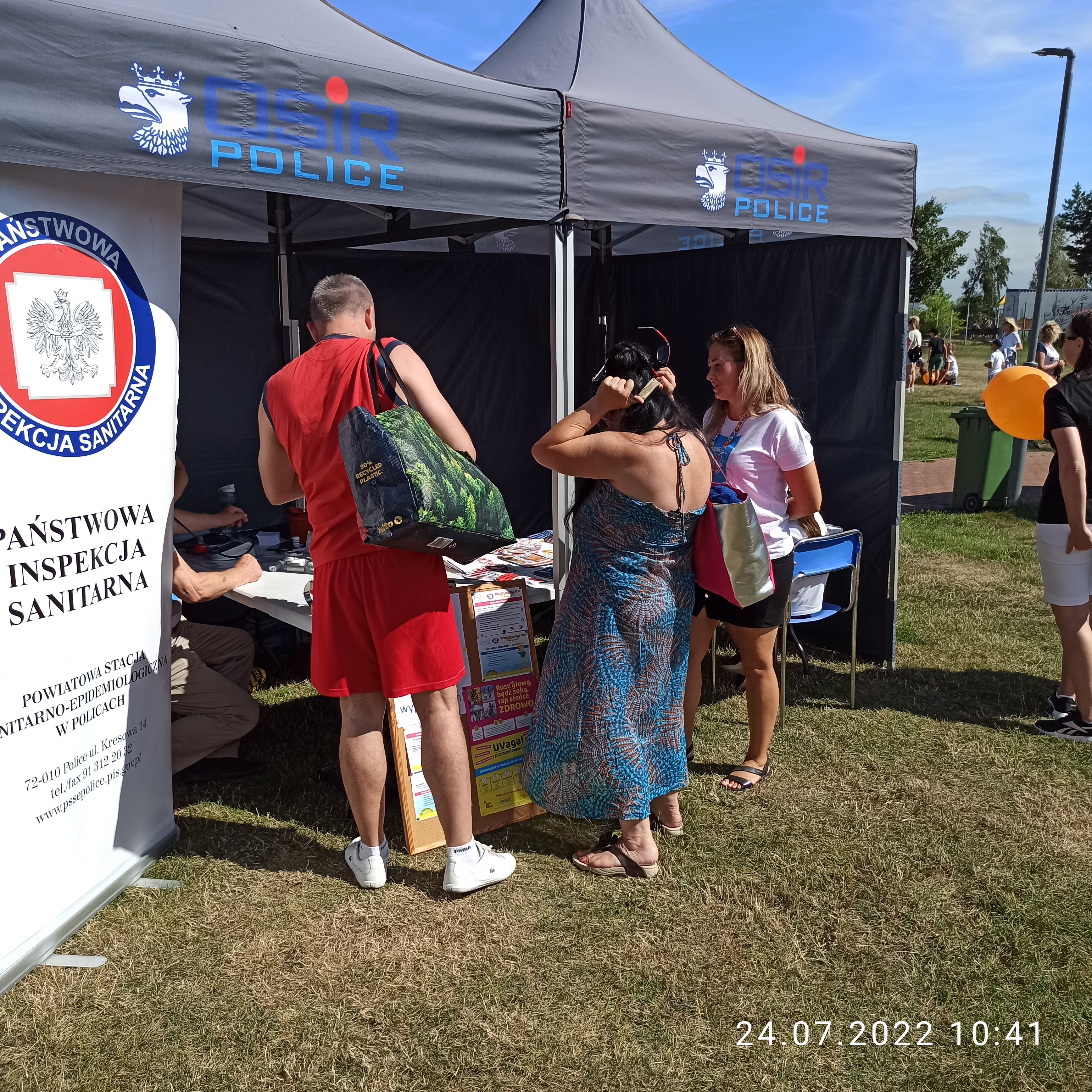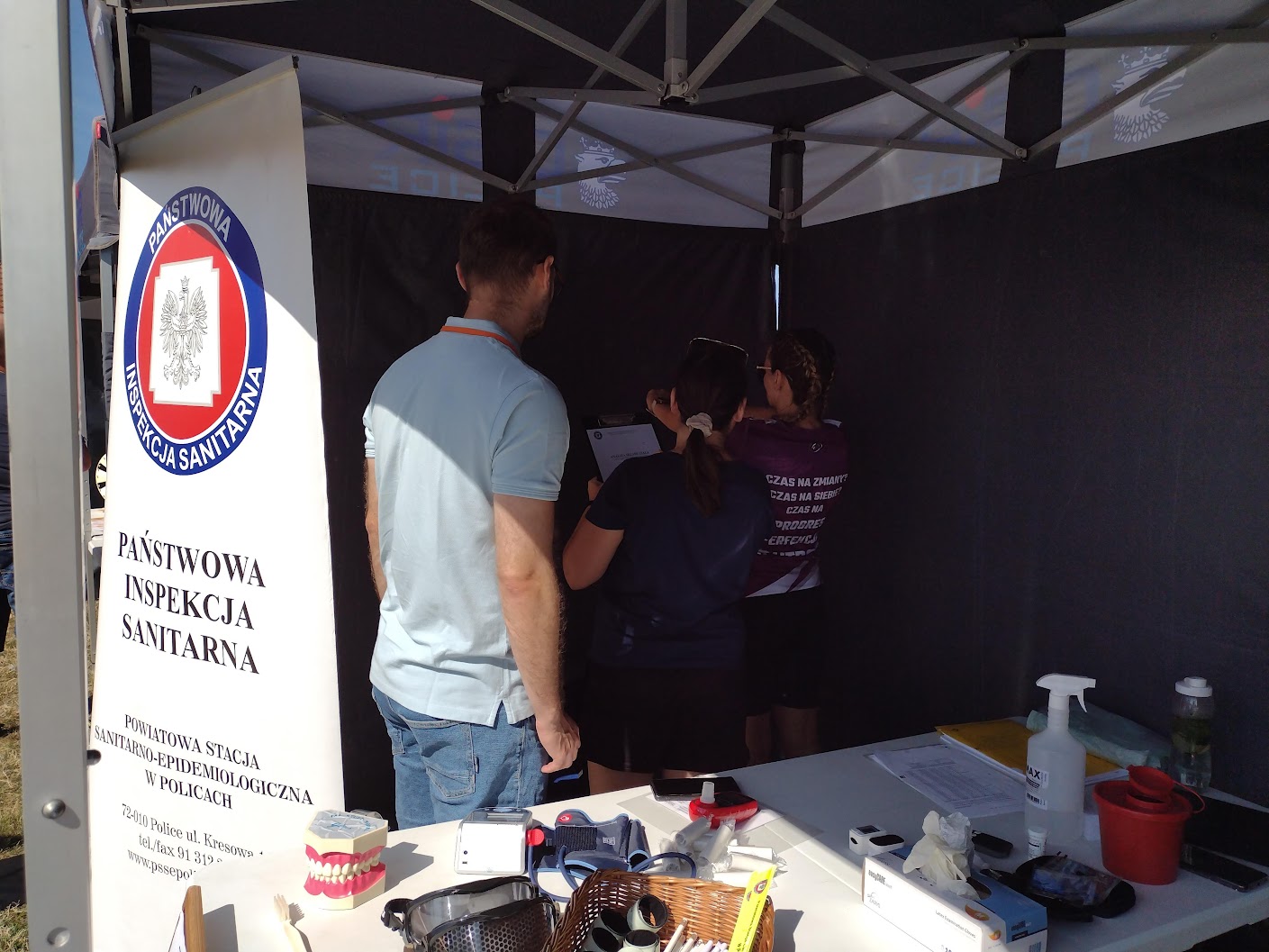Powiatowa Stacja Sanitarno-Epidemiologiczna w Policach wystawiła stoisko edukacyjno-profilaktyczno-pomiarowe, na którym miłośnicy biegania oraz wypoczywający na kąpielisku mogli skorzystać z następujących atrakcji: