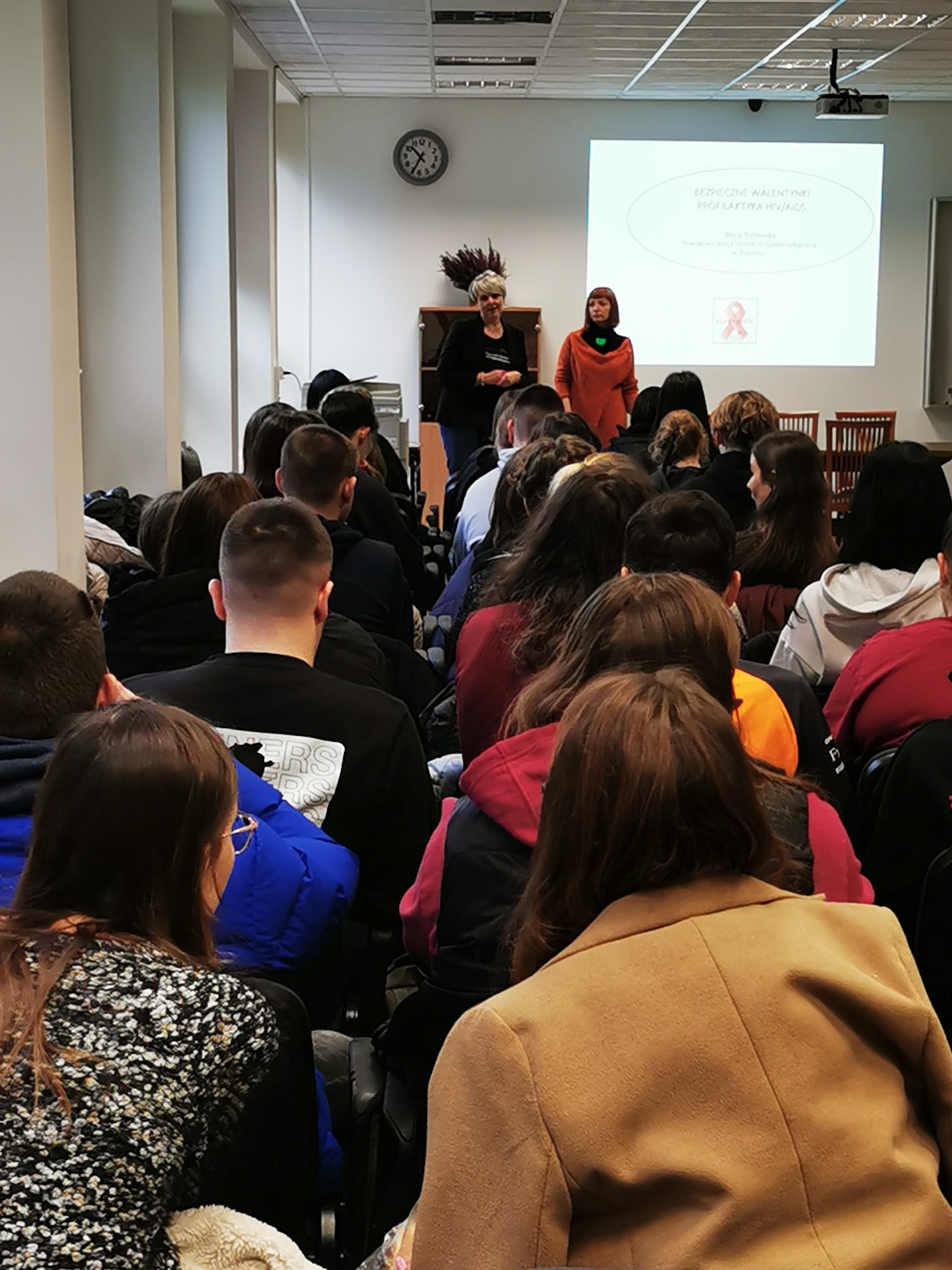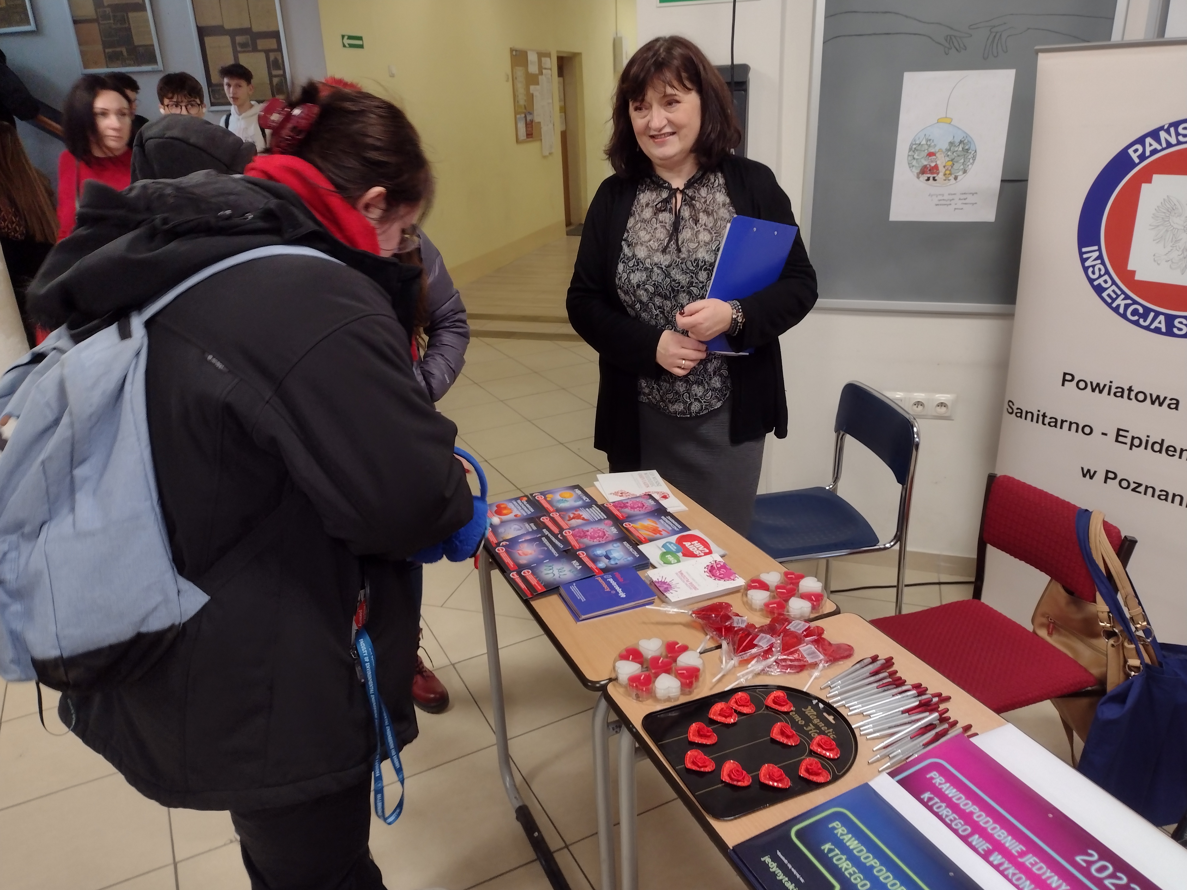 Powiatowa Stacja Sanitarno-Epidemiologiczna w dniach 13-15 lutego zorganizowała akcję informacyjno-edukacyjną pod hasłem „Bezpieczne Walentynki 2023” kierowaną do uczniów trzech poznańskich szkół ponadpodstawowych. Przedsięwzięcie miało na celu podniesienie poziomu wiedzy młodzieży na temat HIV/AIDS oraz innych chorób przenoszonych drogą płciową. Odbyły się wykłady, w których uczestniczyło ok. 500 osób. Młodzież dowiedziała się między innymi jak ustrzec się przed zakażeniem, jakie zachowania są ryzykowne, a jakie bezpieczne oraz gdzie uzyskać pomoc w przypadku wystąpienia ryzyka zakażenia. Celem akcji była również popularyzacja testowania w kierunku HIV.