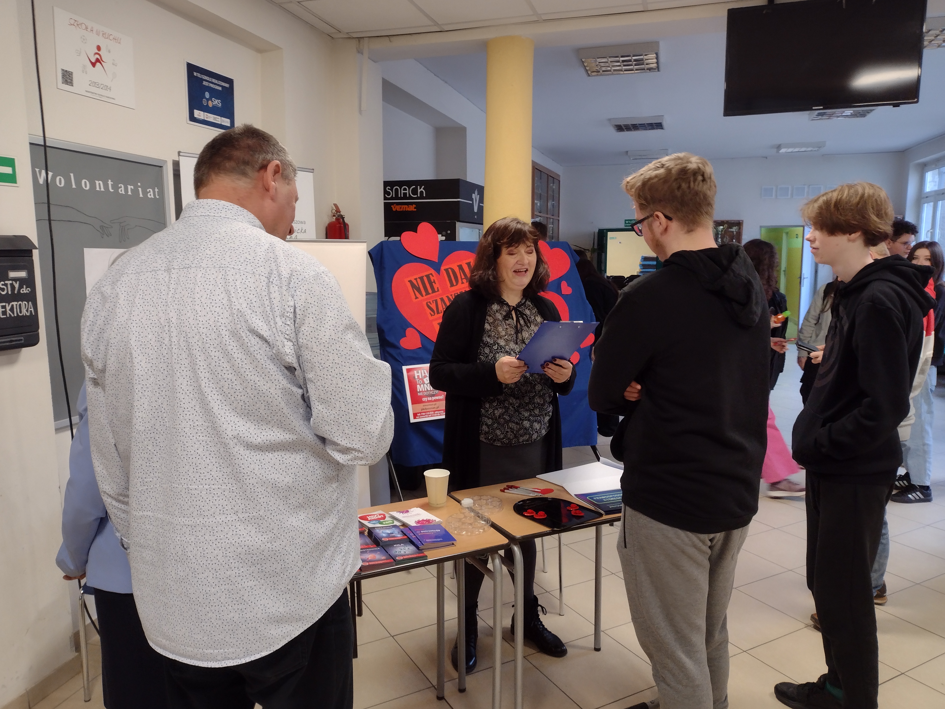 Oprócz wykładów zorganizowano dwa punkty informacyjno-edukacyjne dostępne dla społeczności szkolnej. Osoby odwiedzające stoisko mogły uzyskać materiały edukacyjne oraz uczestniczyć w quizie wiedzy o HIV/AIDS. Prawidłowe odpowiedzi na wylosowane pytania nagradzane były drobnymi walentynkowymi upominkami.