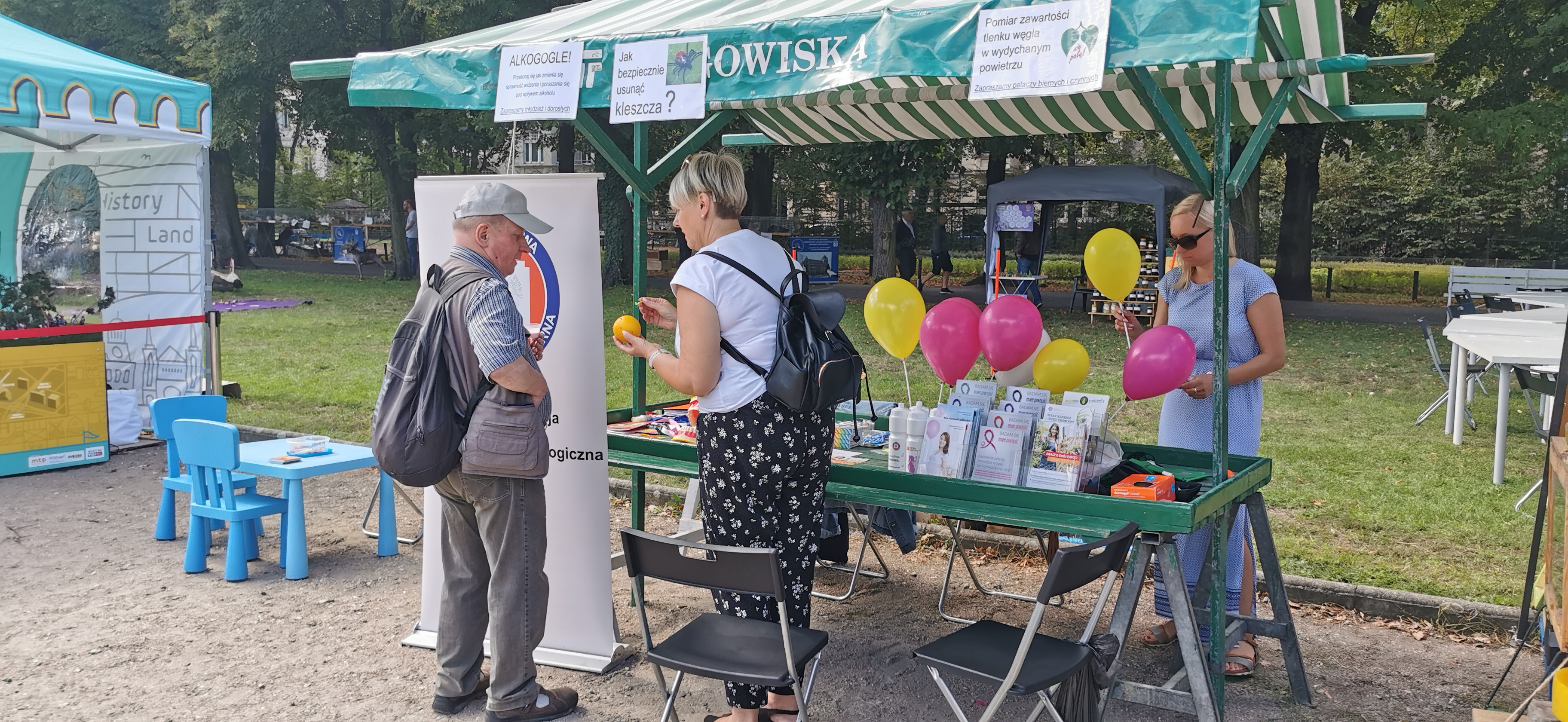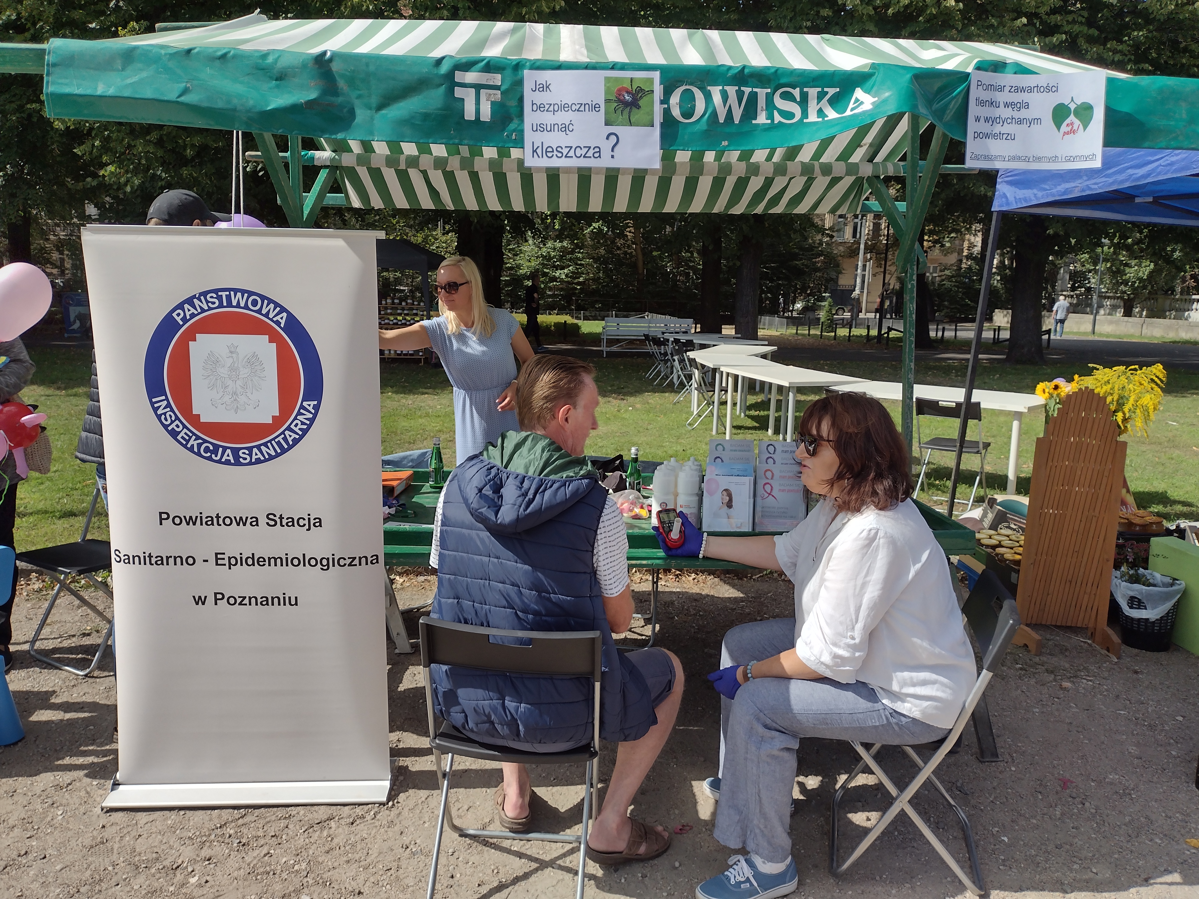 Przepiękna wrześniowa pogoda towarzyszyła nam podczas Dożynek Miejskich w Parku Wilsona. Nasze stoisko cieszyło się bardzo dużym zainteresowaniem wśród młodszych i starszych uczestników festynu. W przyjemnej plenerowej atmosferze promowaliśmy zasady zdrowego stylu życia, edukowaliśmy w zakresie higieny osobistej oraz profilaktyki chorób. Przekonywaliśmy palaczy do rzucenia palenia jako jeden z argumentów wykorzystując pomiar zawartości tlenku węgla w wydychanym powietrzu. Prowadziliśmy też profilaktykę antyalkoholową oferując zainteresowanym możliwość przekonania się przy użyciu alkogogli jak alkohol wpływa na nasze zmysły.