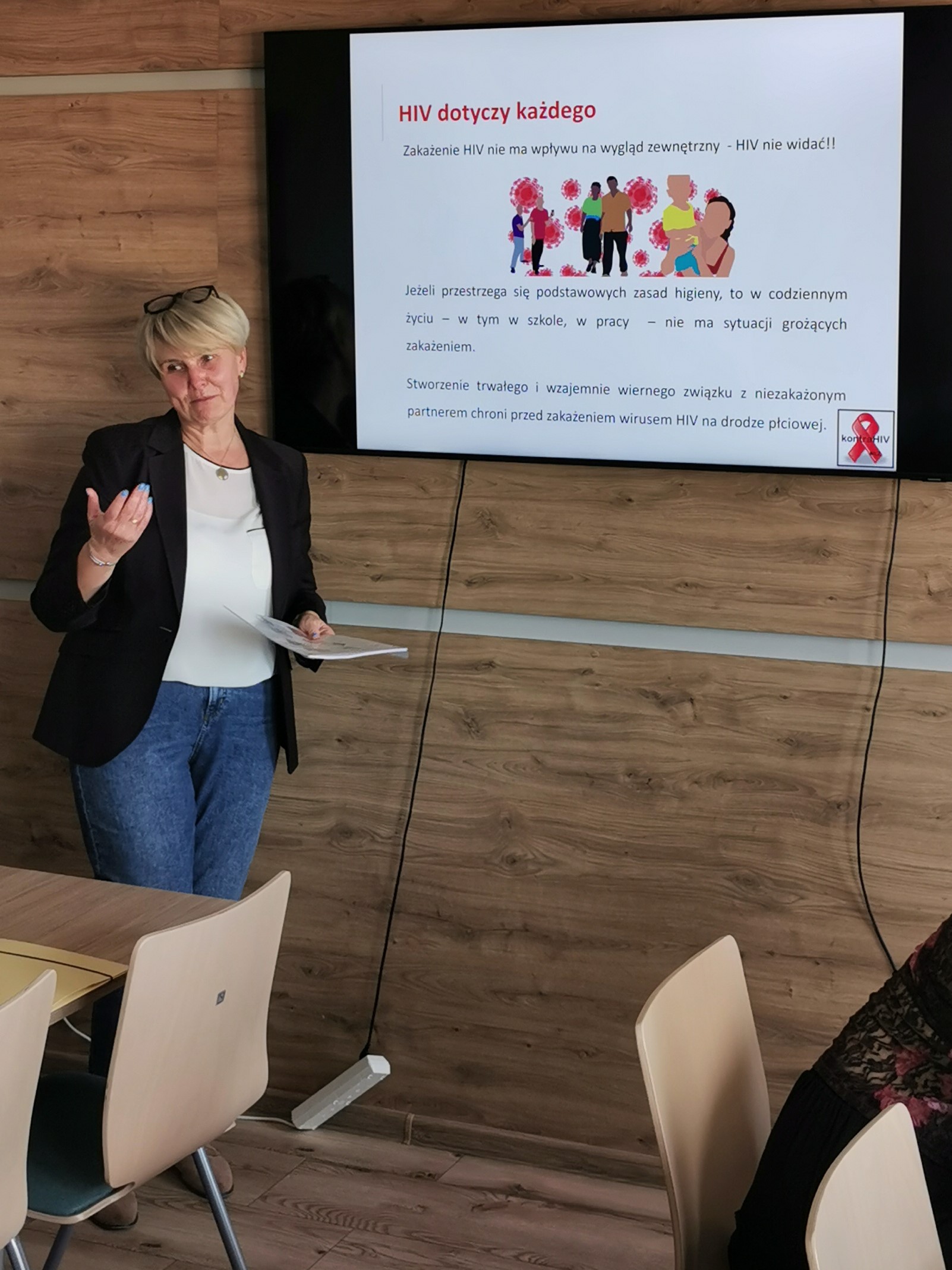 W dniu 12 października 2022 r. zrealizowaliśmy kolejne spotkanie w ramach projektu Młodzieżowi Liderzy Zdrowia Kontra HIV. Do udziału zaprosiliśmy grupę uczniów z trzech poznańskich szkół ponadpodstawowych. W sali konferencyjnej PSSE w Poznaniu odbyły się kilkugodzinne warsztaty, podczas których młodzi ludzie zdobyli wiedzę na temat HIV/AIDS oraz innych chorób przenoszonych drogą płciową, a także nabyli umiejętności podejmowania świadomych decyzji zmniejszających ryzyko zakażenia. Celem warsztatów było również wykształcenie właściwych postaw wobec osób zakażonych wirusem HIV i chorych na AIDS oraz wskazanie miejsca, gdzie można uzyskać pomoc, poradnictwo i opiekę medyczną. Zgodnie z ideą edukacji rówieśniczej zachęciliśmy uczestników do szerzenia zdobytej wiedzy wśród swoich rówieśników w środowisku szkolnym ale także wśród znajomych i przyjaciół w kontaktach pozaszkolnych.