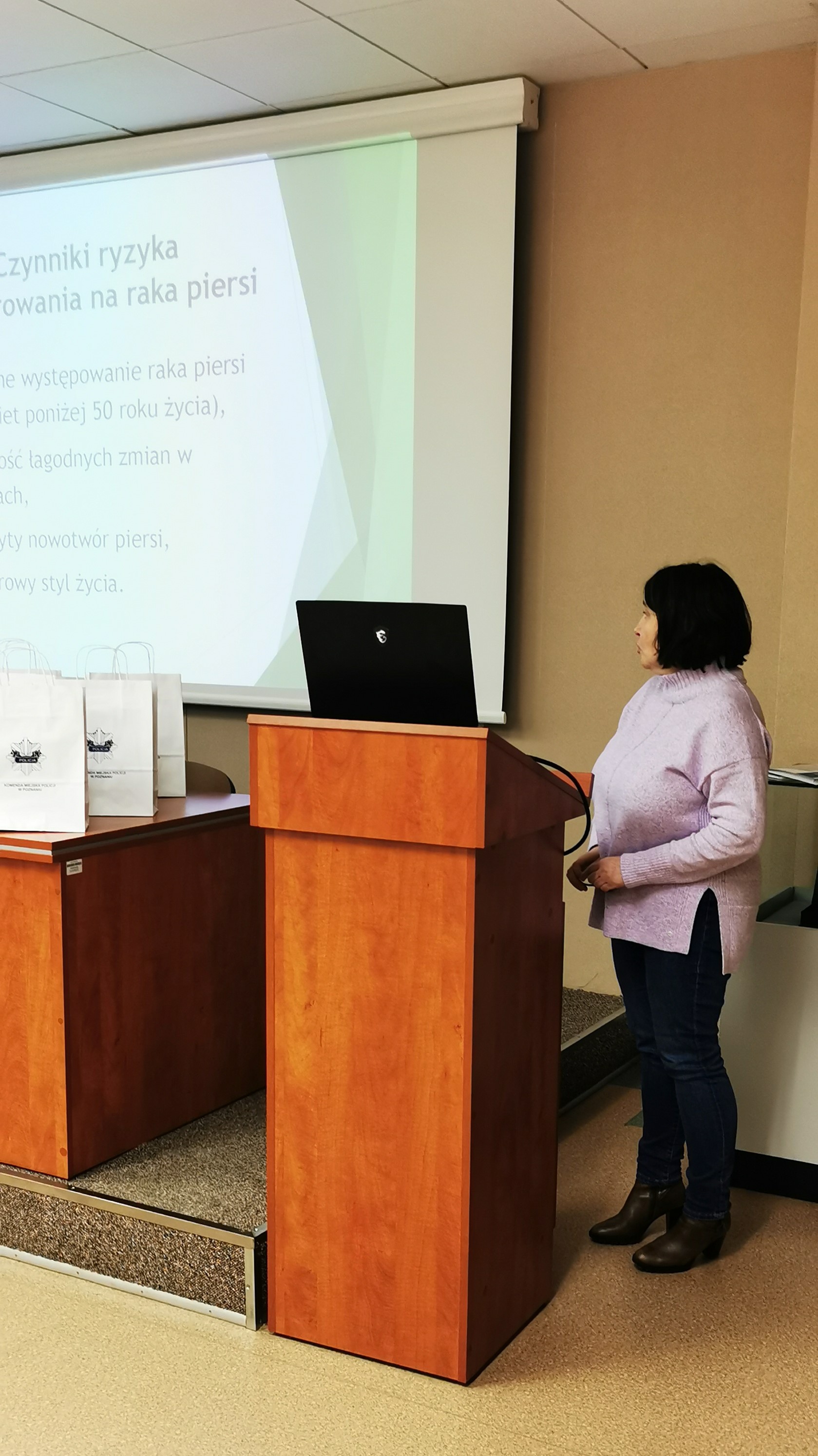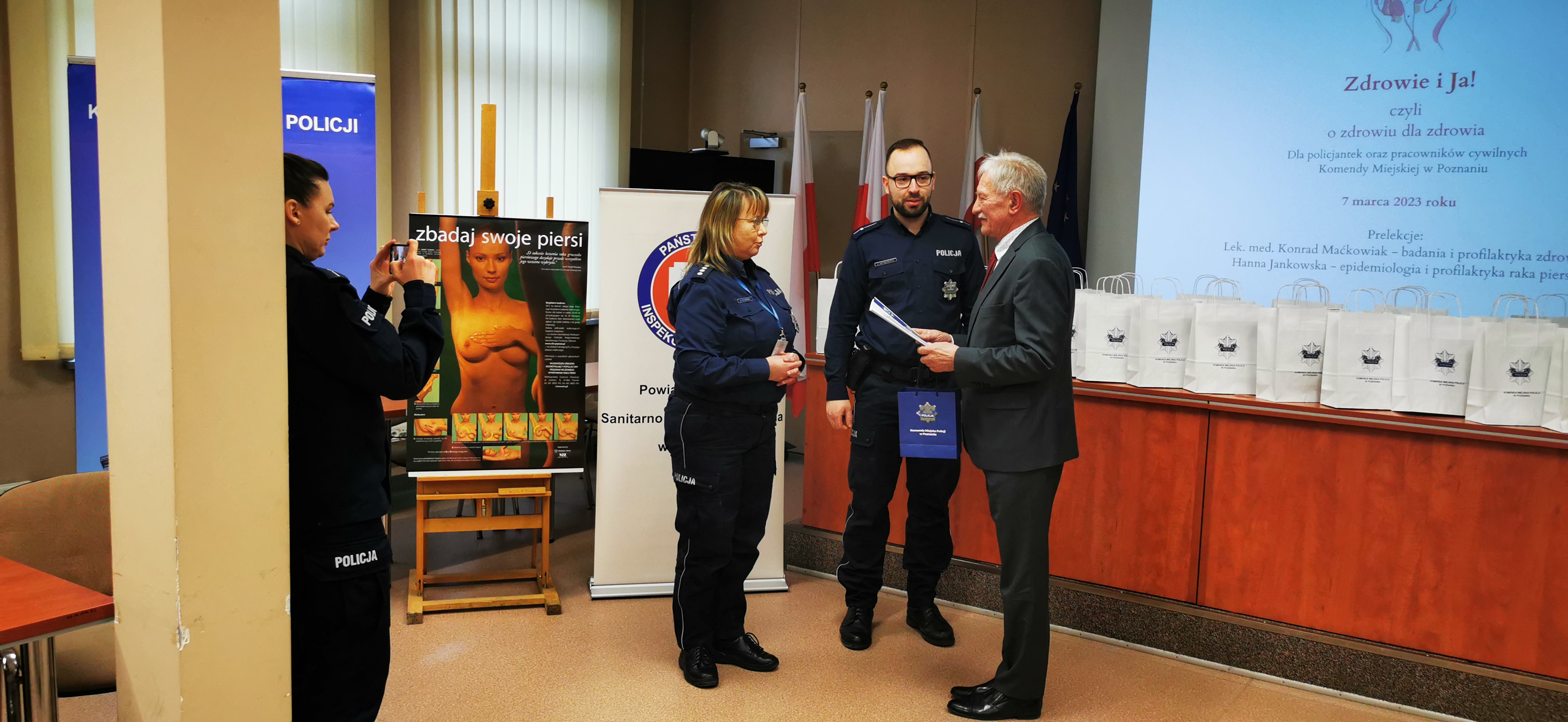 W dniu 7 marca 2023 roku we współpracy z Komendą Miejską Policji w Poznaniu zorganizowano szkolenie dla policjantek i pracowników cywilnych. Temat diagnostyki i profilaktyki raka piersi omówił lekarz z Poradni Ginekologiczno-Położniczej WSPL SP w Poznaniu lek. med. Konrad Maćkowiak. Poza wykładem odbył się również pokaz nauki samobadania piersi z wykorzystaniem fantomu. Uczestniczki szkolenia otrzymały ulotki informujące o zasadach profilaktyki raka piersi z instrukcją samobadania.