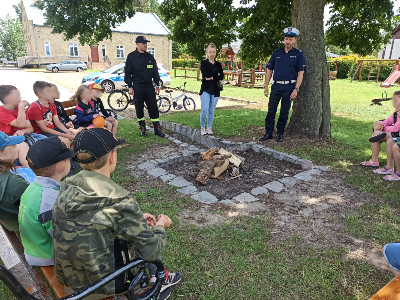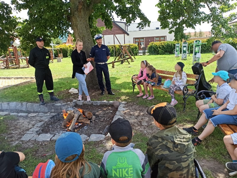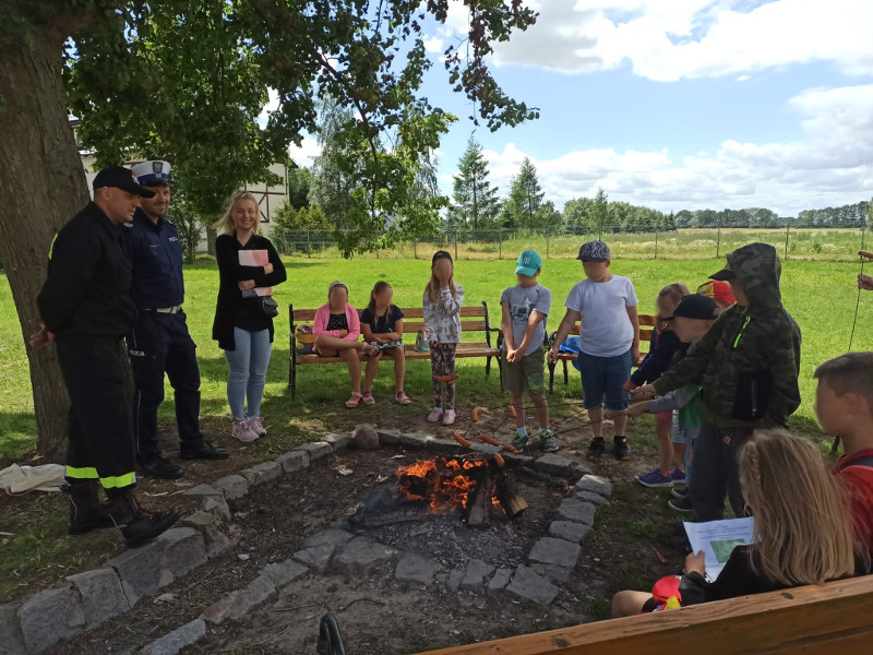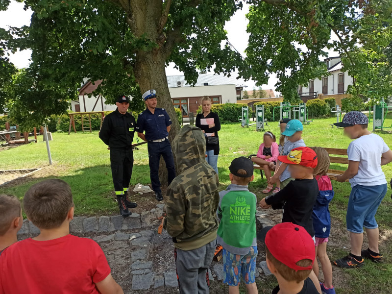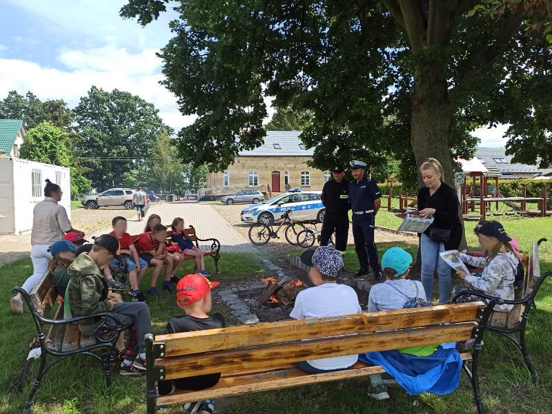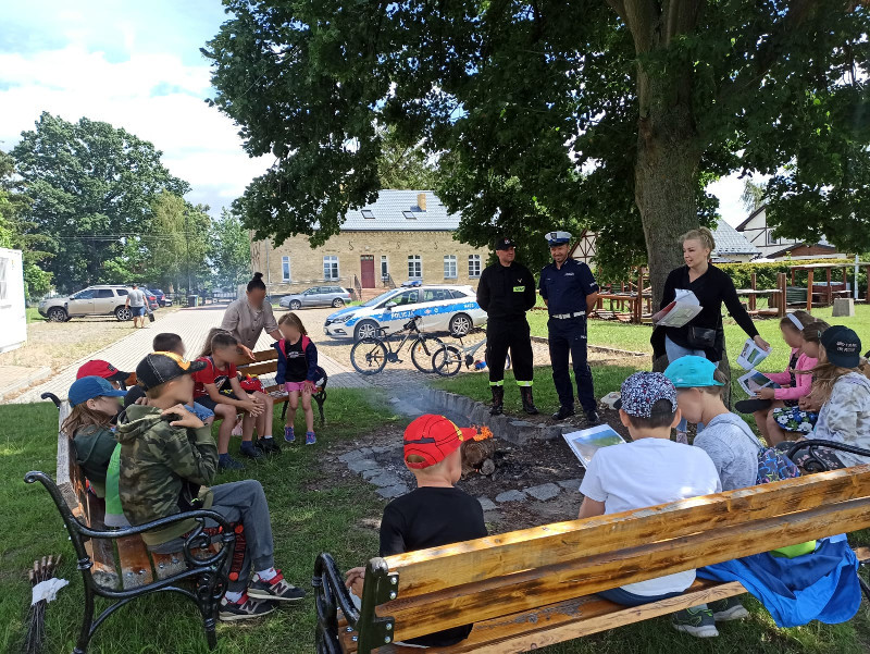Pracownik PSSE w Pruszczu Gdańskim, funkcjonariusz KPP w Pruszczu Gdańskim oraz KPPS w Pruszczu Gdańskim spotkali się z uczestnikami półkolonii w Cedrach Wielkich. Podczas plenerowego spotkania poruszono temat bezpiecznego postępowania podczas wakacji. Uczestnicy otrzymali pakiet zadań edukacyjnych do rozwiązania w czasie wolnym.