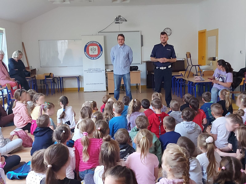 Pracownik PSSE w Pruszczu Gdańskim wraz z przedstawicielami Komendy Powiatowej Policji w Pruszczu Gdańskim odwiedzili kolejne dwie placówki oświatowe tj.: Niepubliczną Szkołę Integracyjną Lawendowy Król w Pruszczu Gdańskim oraz Szkołę Podstawową im. Danuty Siedzikówny „INKI” w Wiślinie.