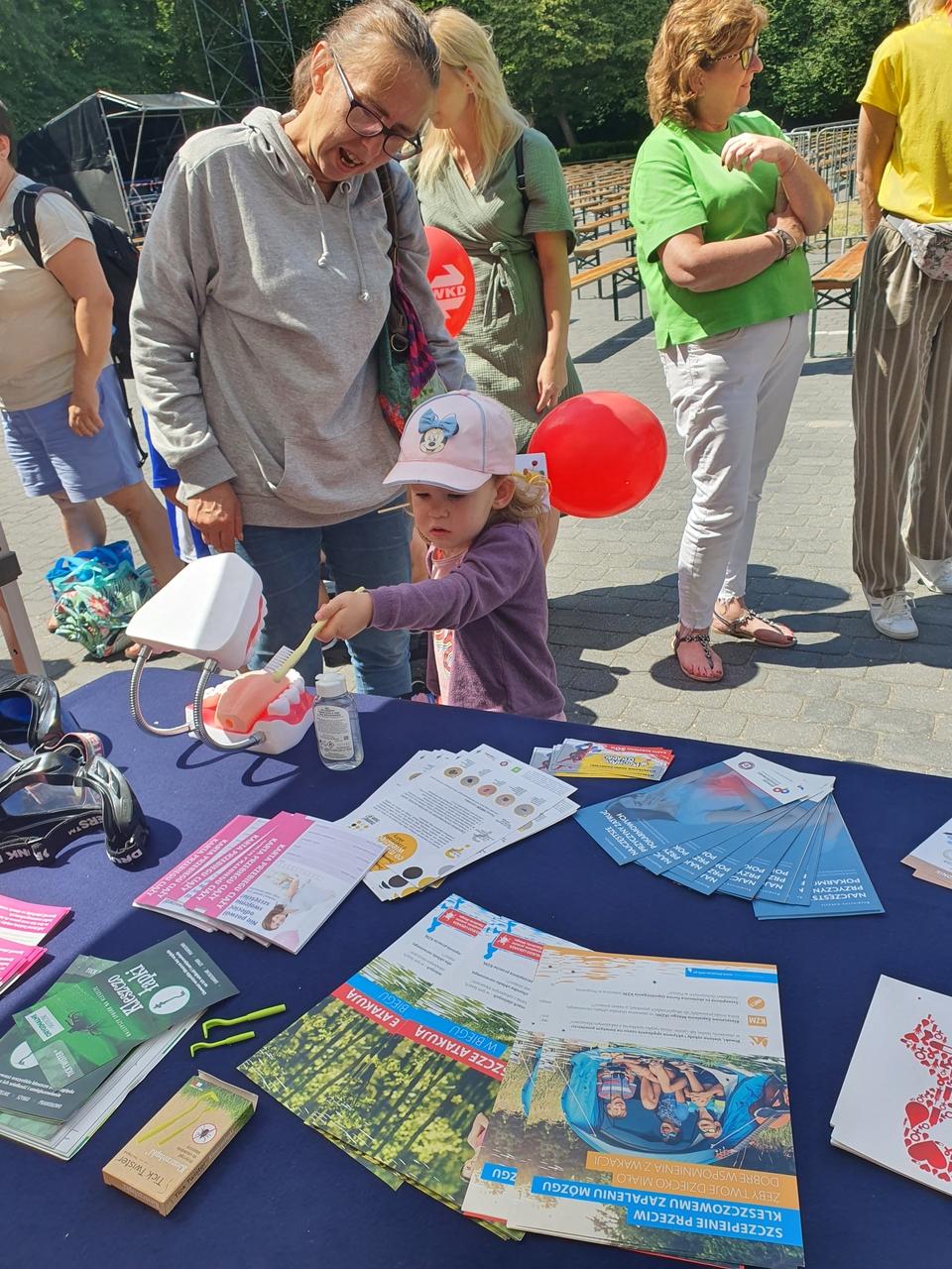 Kolejnym istotnym tematem była higiena jamy ustnej, najmłodsi zainteresowani mieli możliwość sprawdzenia swojej techniki mycia zębów na modelu szczęki, która była dostępna na naszym stoisku.