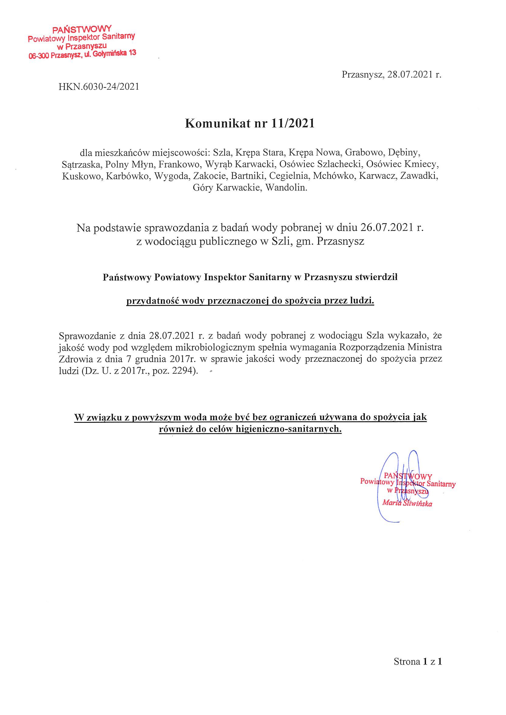 Komunikat stwierdzający przydatność wody do spożycia z wodociągu Szla z dnia 28.07.2021 r.komunikat-z-dnia-2807-Szla.pdf 0.23MB
