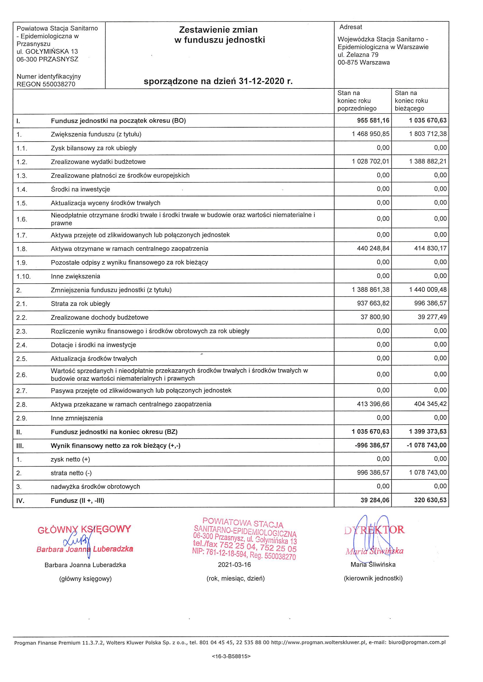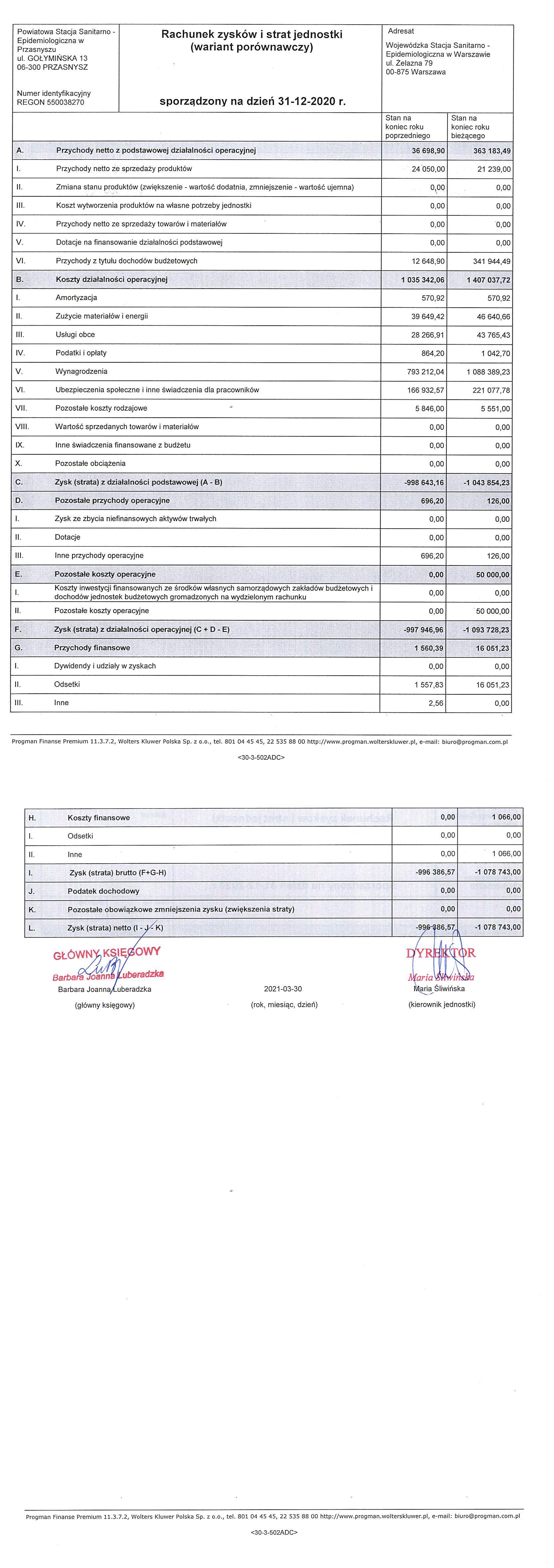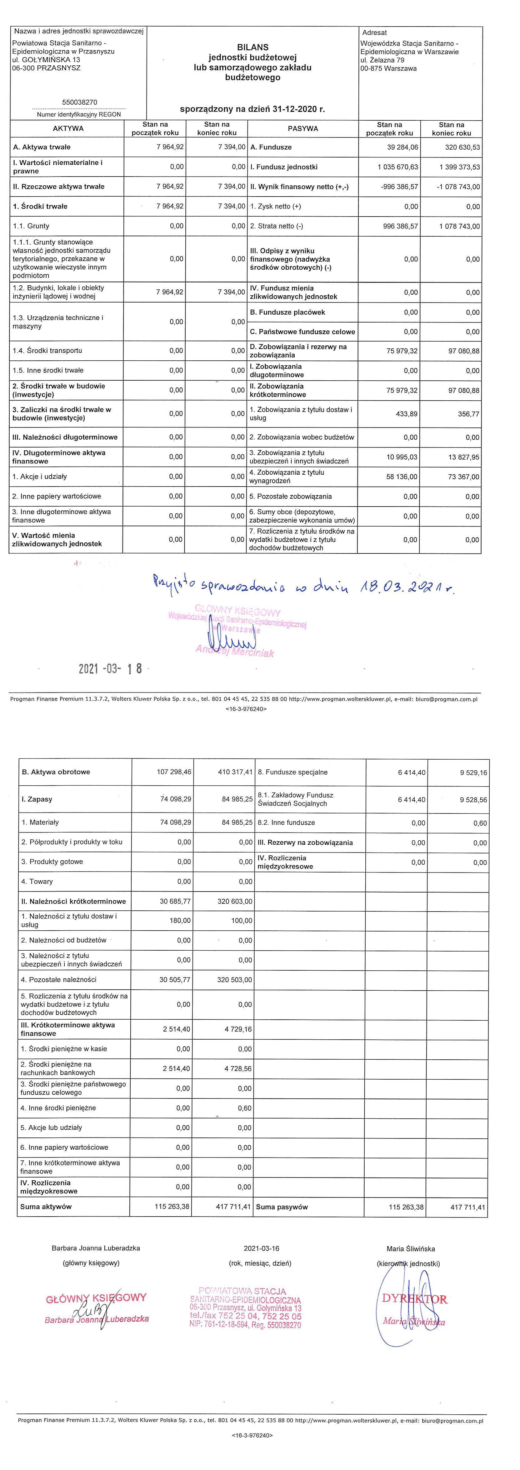 Sprawozdanie finansowe za rok 2020