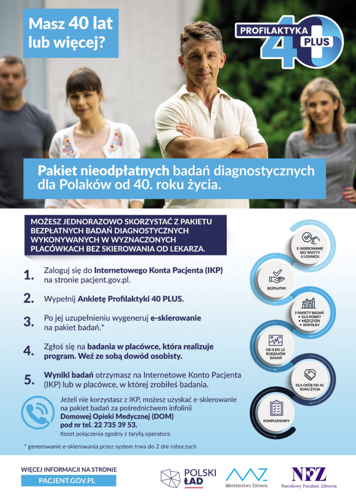 Od 1 lipca 2021 r. każdy Polak powyżej 40 roku życia otrzyma jednorazowy dostęp do bezpłatnego pakietu badań diagnostycznych.