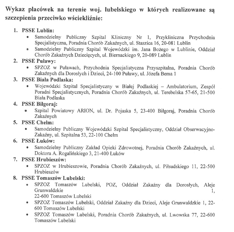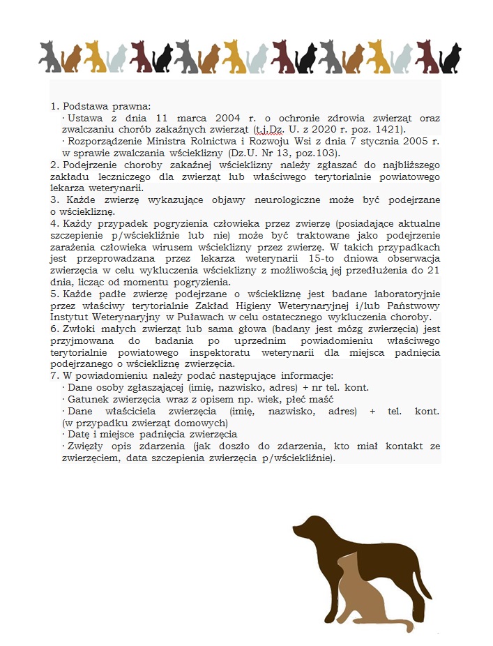 Wścieklizna w lasach powiatu w miejscowościach: Borowa, Skoki, Matygi, Borowina, Nieciecz.