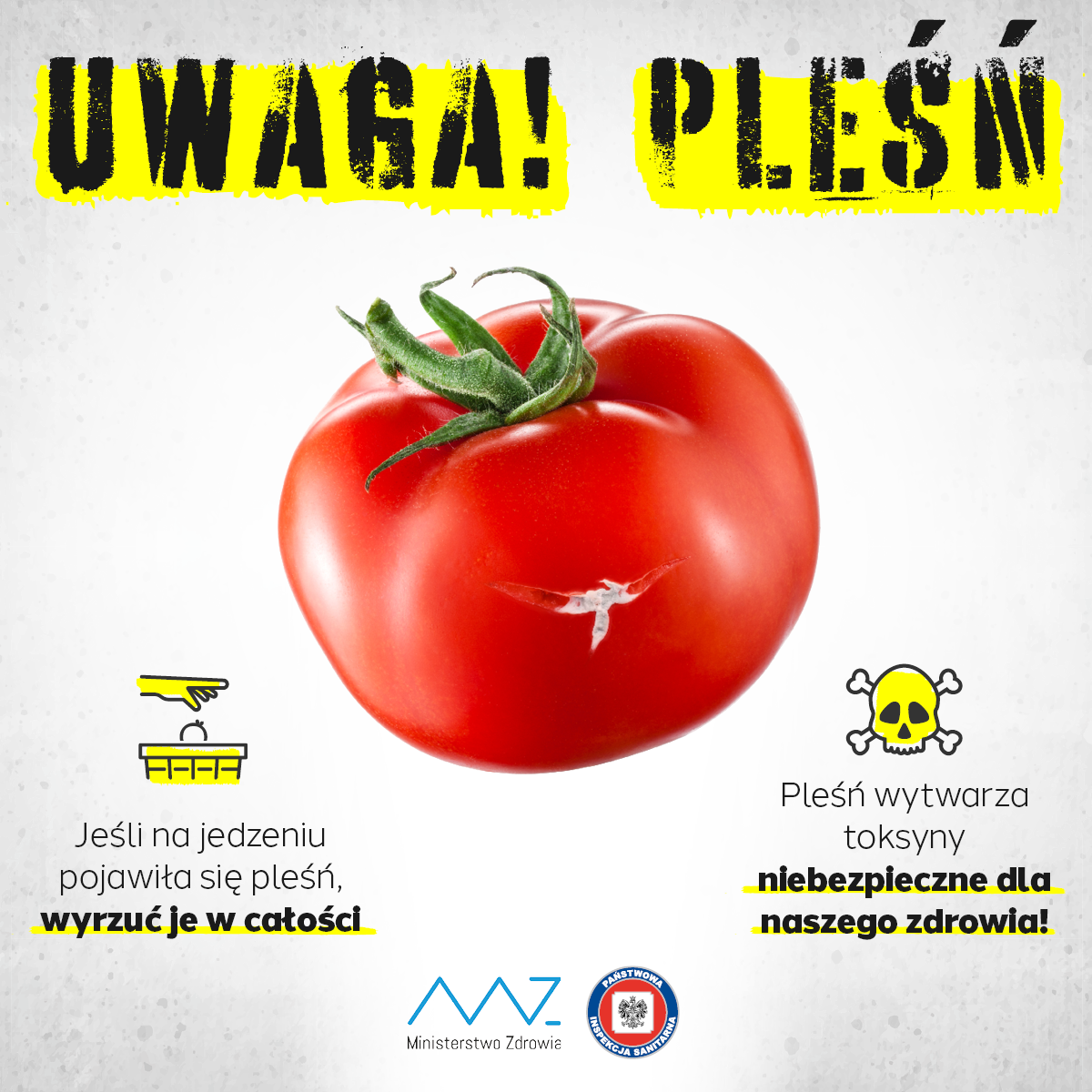 Sezon na owoce i warzywa w pełni. Świeże produkty to pyszne i zdrowe urozmaicenie naszej diety. W przypadku, kiedy np. na pomidorze czy śliwce pojawi się plamka pleśni, "jedzenie należy wyrzucić w całości". Pleśń wytwarza toksyny niebezpieczne dla naszego zdrowia. Nie wystarczy odkroić spleśniałej części! Zjedzenie reszty produktu grozi zatruciem.