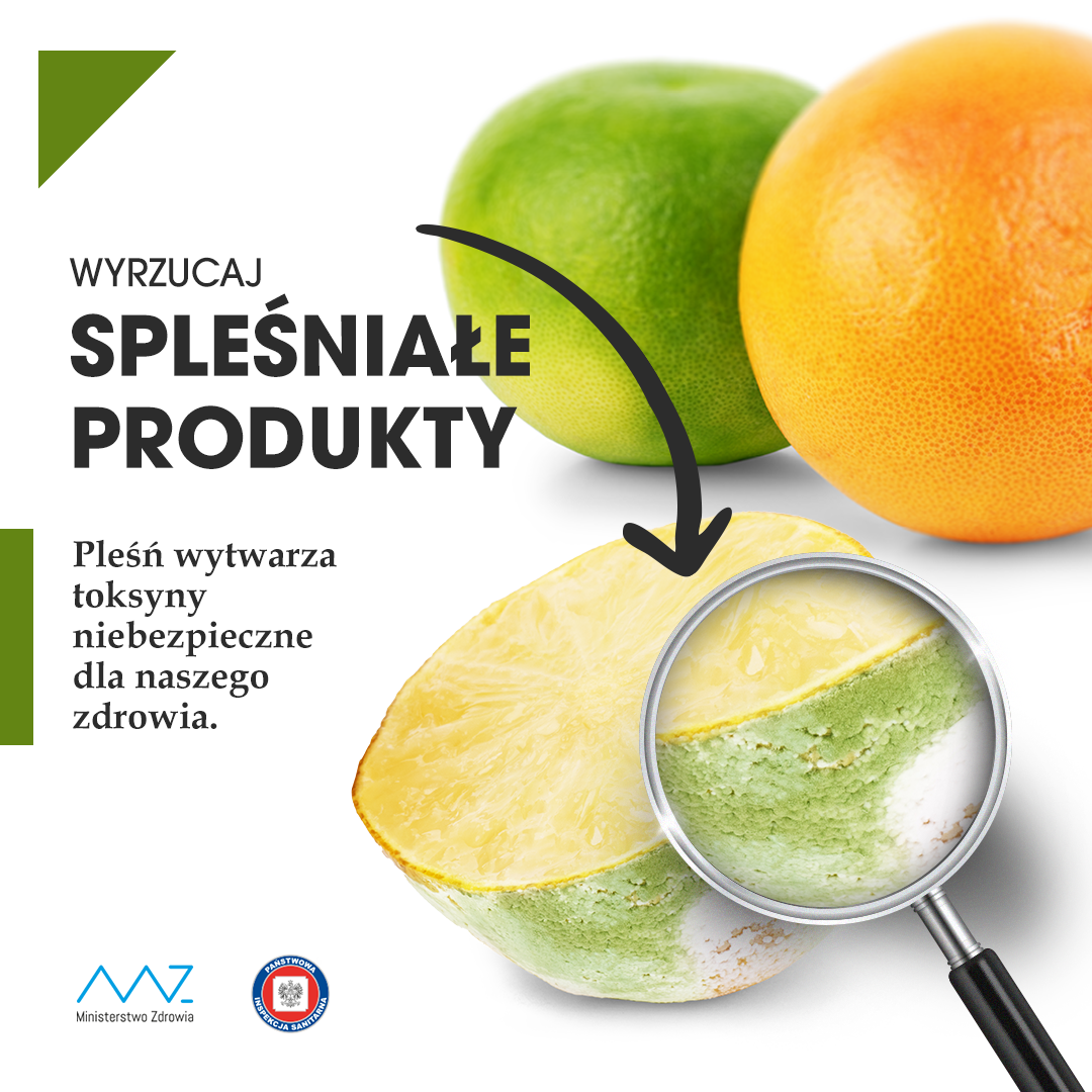 Substancje te obecne są nie tylko w widocznej, zepsutej części potrawy, ale znajdują się również w całym zaatakowanym pleśnią warzywie czy owocu. Wnikają one bowiem w głąb produktu, a widoczna na powierzchni pleśń jest jedynie wykwitem grzybni, której niewidoczne gołym okiem „korzenie” są w środku owocu czy warzywa. Nie wystarczy więc odkroić zepsutą część, ponieważ zjedzenie takiego produktu zagraża twojemu zdrowiu i może spowodować zatrucie.