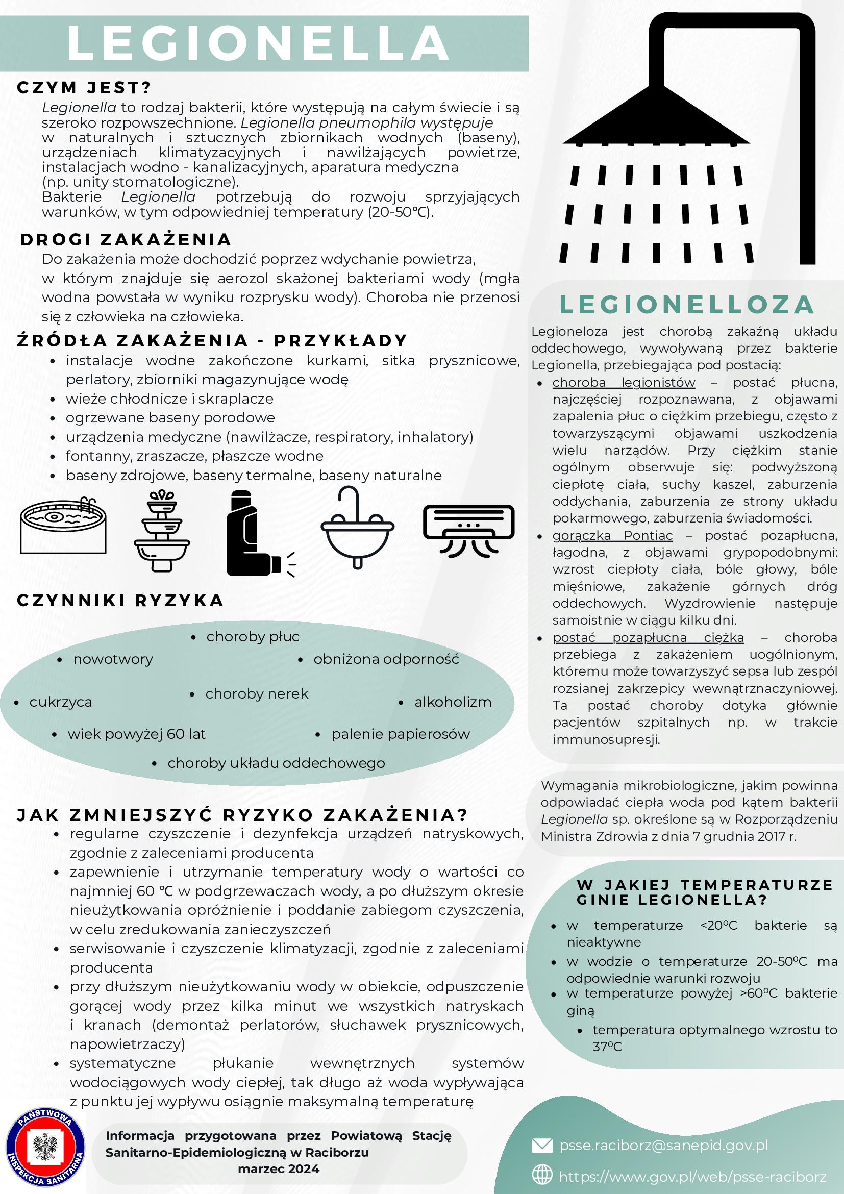 Komunikat Legionelloza - zalecenia Państwowego Powiatowego Inspektora Sanitarnego w Raciborzu