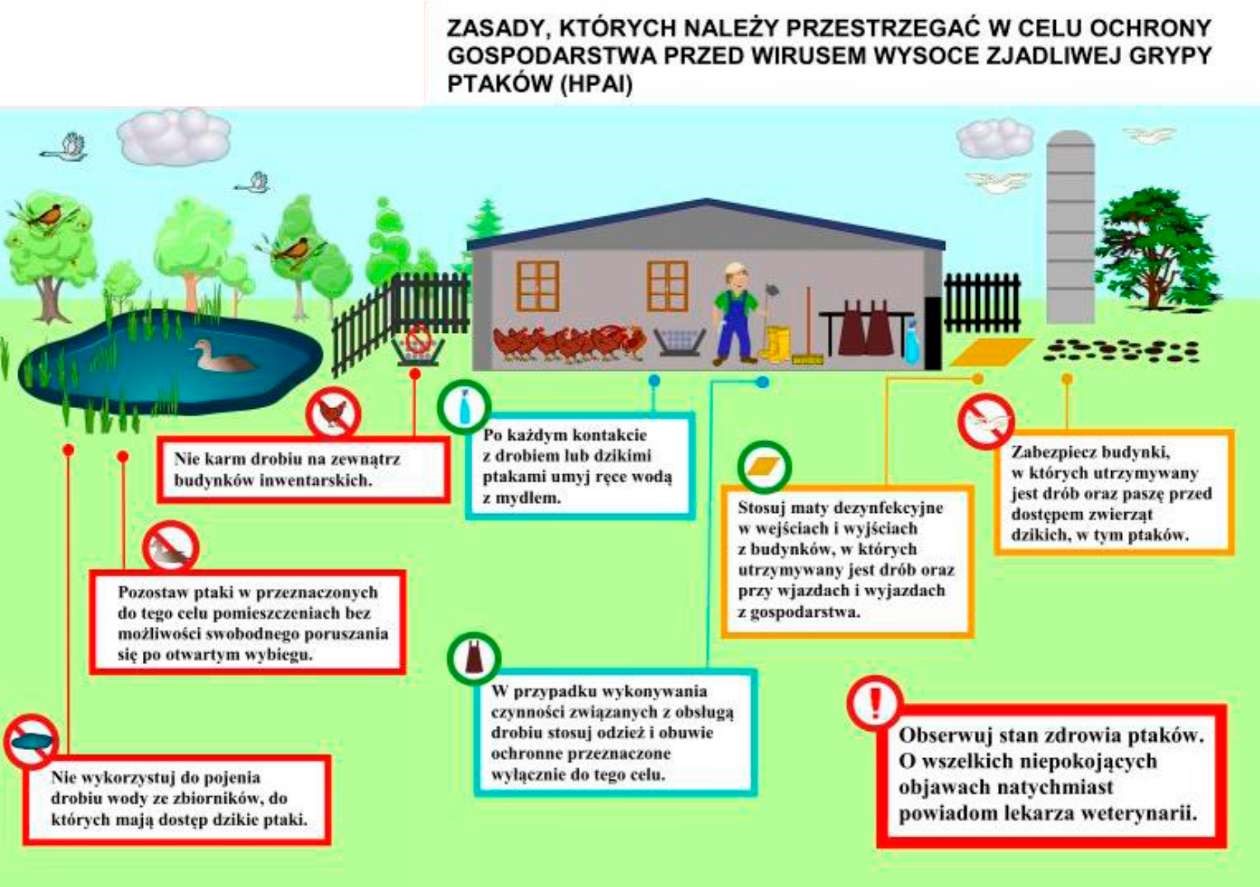 - stosuj się do zaleceń miejscowych służb sanitarnych oraz lekarzy, a także do zaleceń organów Inspekcji Weterynaryjnej, służb ochrony środowiska na terenach występowania ognisk zakażeń wśród ptaków w Polsce i za granicą,