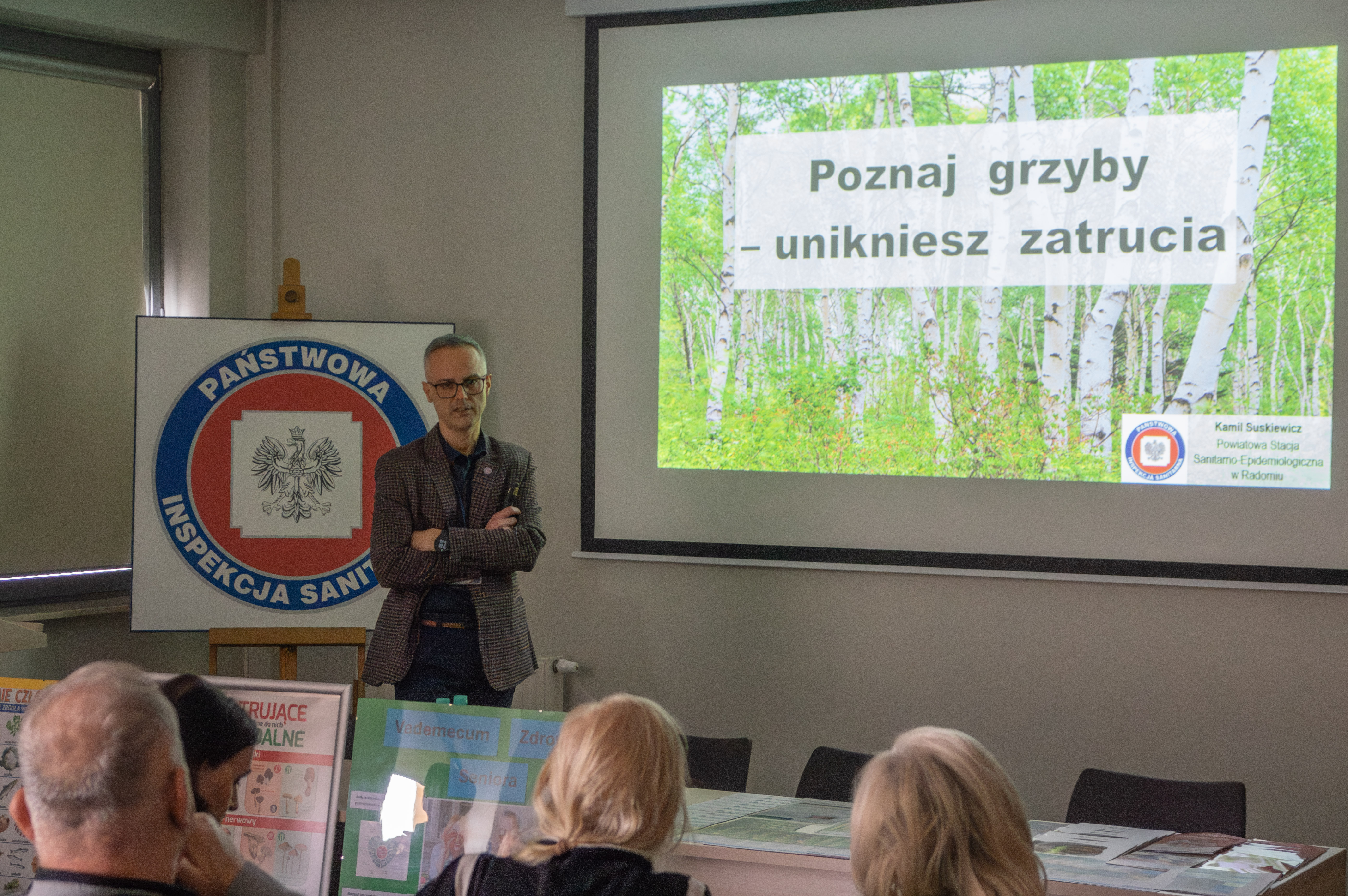 i ich znaczenia w funkcjonowaniu ludzi starszych, - Nasi goście dowiedzieli się o interakcjach z lekami i o tym, jak unikać zatruć pokarmowych, także tych, które mogą wywoływać niejadalne grzyby. Poznali szereg tych szkodliwych roślin, zwiedzając wystawę „Poznaj grzyby, unikniesz zatrucia”,