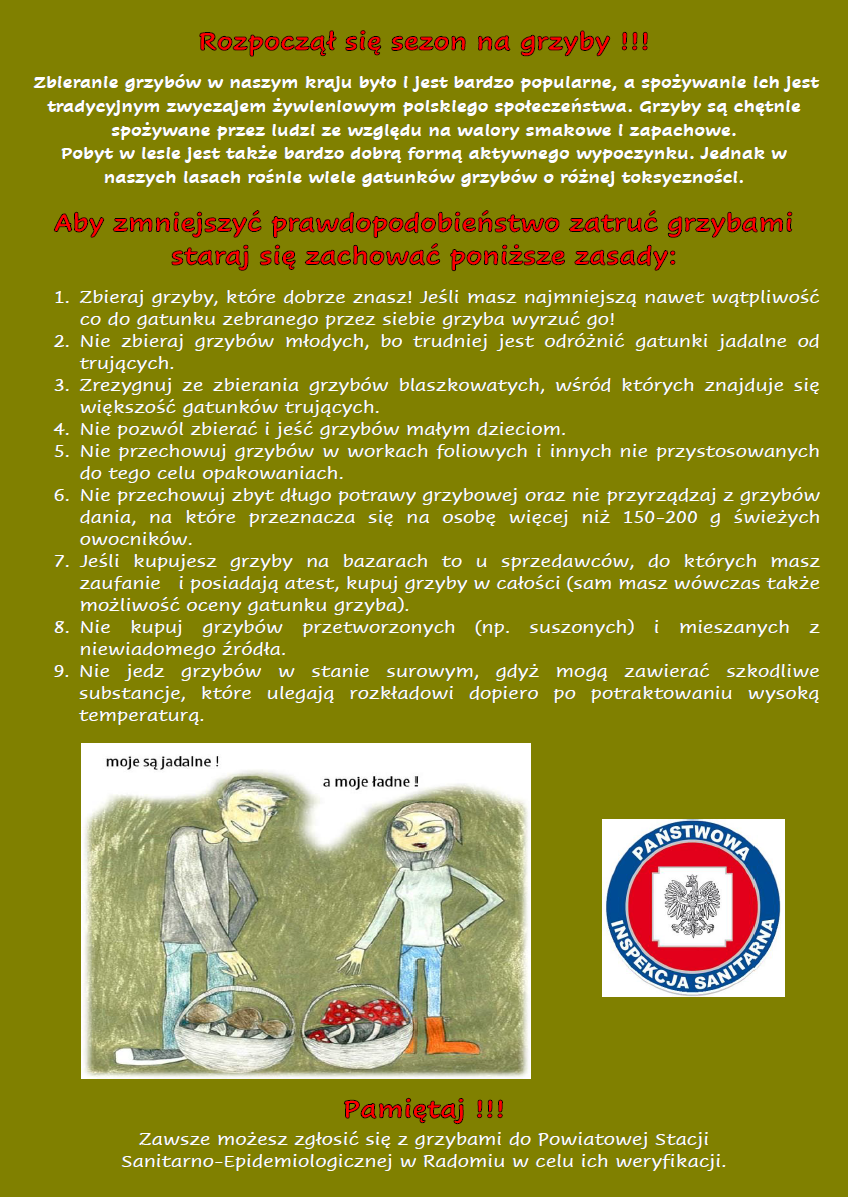 Zawsze możesz zgłosić się z grzybami do Powiatowej Stacji Sanitarno-Epidemiologicznej w Radomiu w celu ich weryfikacji.