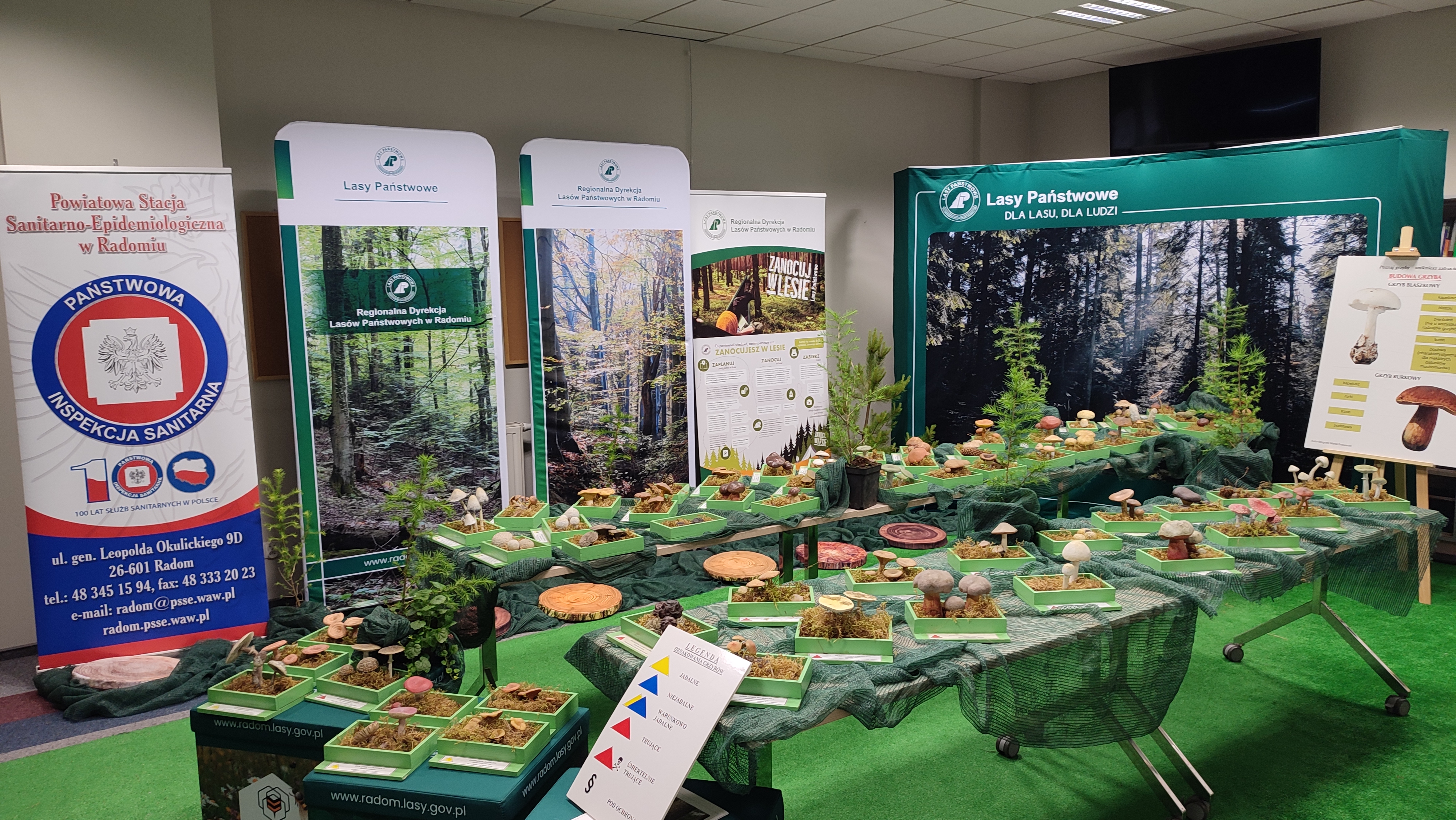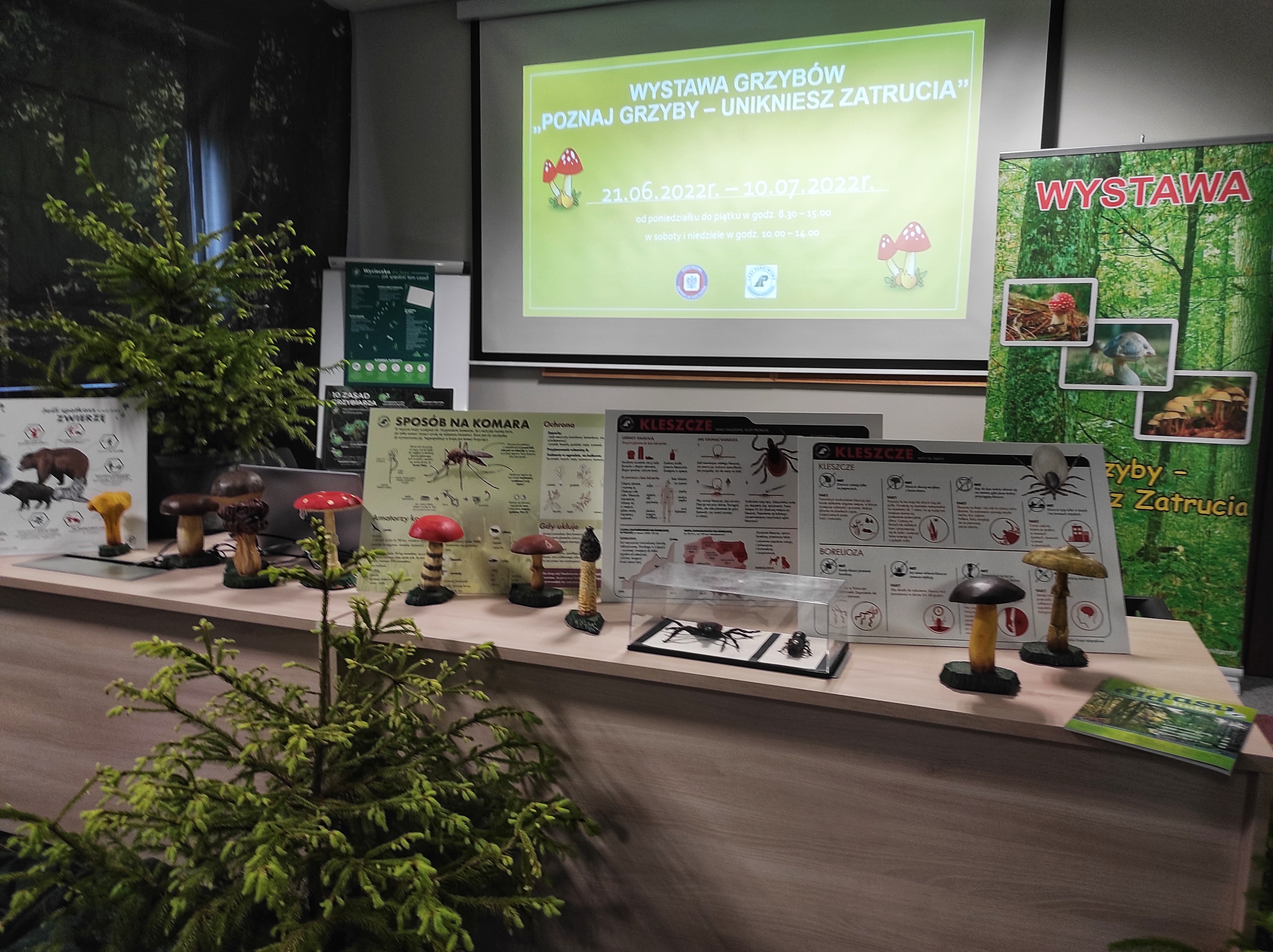 W lasach pojawiły się już pierwsze grzyby. Zbieranie grzybów w naszym kraju jest bardzo popularne. Ze względu na walory smakowe i zapachowe chętnie spożywamy potrawy z grzybów. Najlepszym okresem dla grzybiarzy jest lato oraz jesień. Pobyt w lesie jest także bardzo dobrą formą aktywnego wypoczynku. W naszych lasach rośnie wiele gatunków grzybów jadalnych, niejadalnych, trujących o różnej toksyczności. Aby zmniejszyć prawdopodobieństwo zatruć grzybami zapraszamy do zwiedzenia naszej wystawy grzybów pt. „POZNAJ GRZYBY - UNIKNIESZ ZATRUCIA”. Celem wystawy jest upowszechnienie wiedzy nt. grzybów jadalnych, niejadalnych, trujących oraz zapoznanie z zasadami bezpiecznego grzybobrania. Podczas wystawy prezentowane będą atrapy grzybów odwzorowujące środowisko naturalne w skali 1:1 (61 sztuk), tematyczne filmy edukacyjne pozwalające poznać budowę grzybów, ich różnicowanie i zasady bezpiecznego przebywania w lesie.
