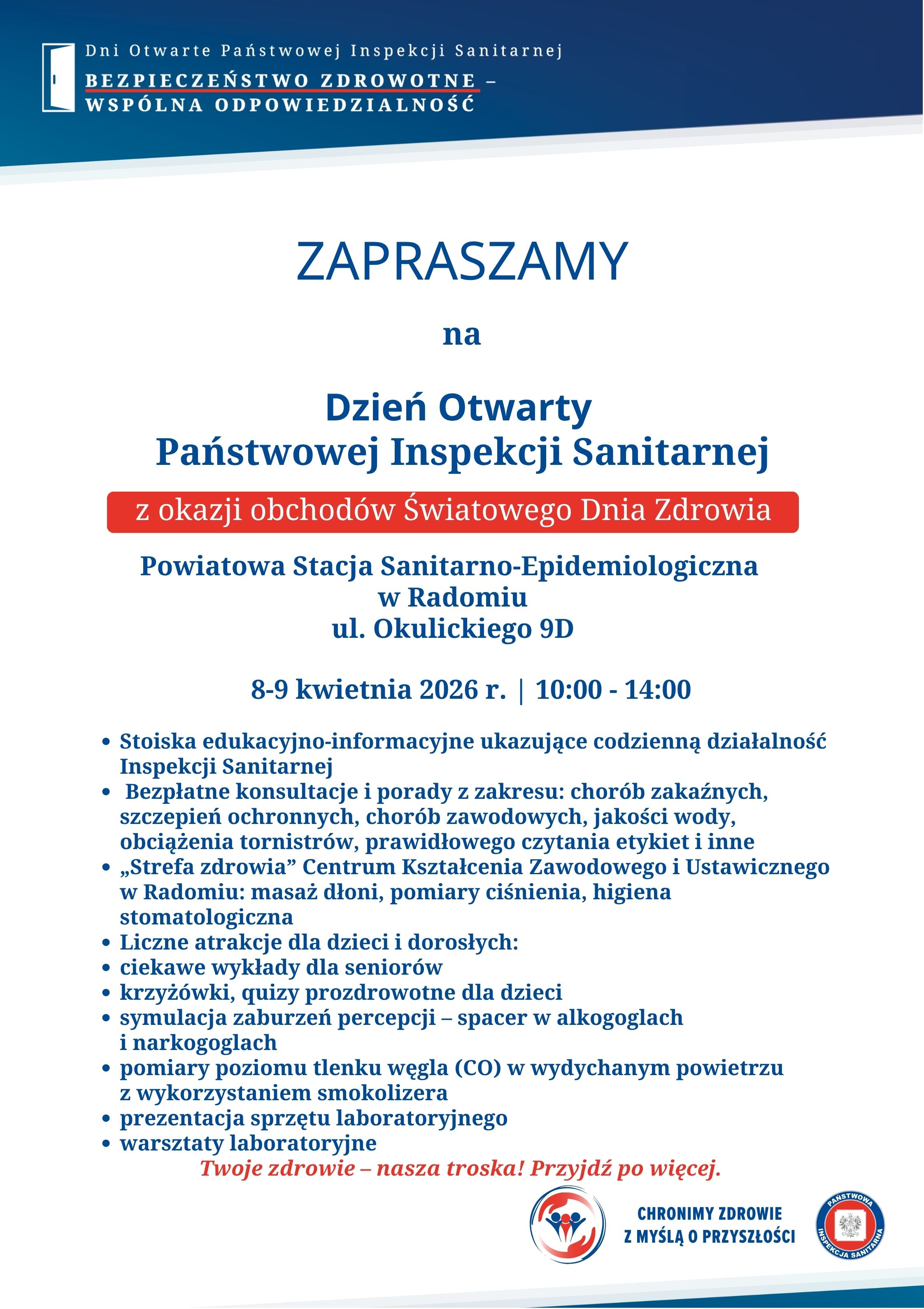8 i 9 kwietnia Powiatowa Stacja Sanitarno-Epidemiologiczna w Radomiu otwiera drzwi dla mieszkańców, aby pokazać, jak wygląda nasza praca „od kuchni”.