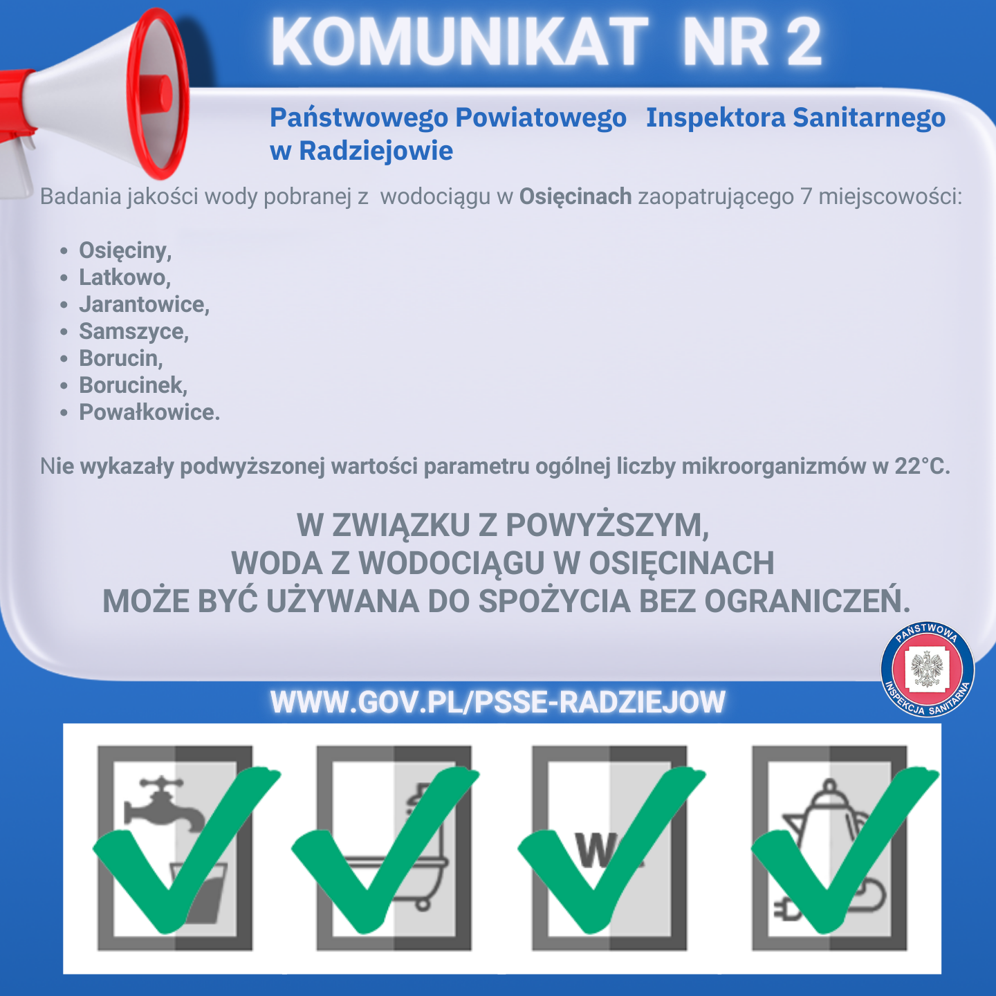 Komunikat Nr 2 z dnia 06.10.2023 Państwowego Powiatowego Inspektora Sanitarnego w Radziejowie dotyczący wodociągu w Osięcinach 06.10.2023 Materiały Komunikat nr 2 Osięciny Komunikat_nr_2_Osięciny.png 0.77MB