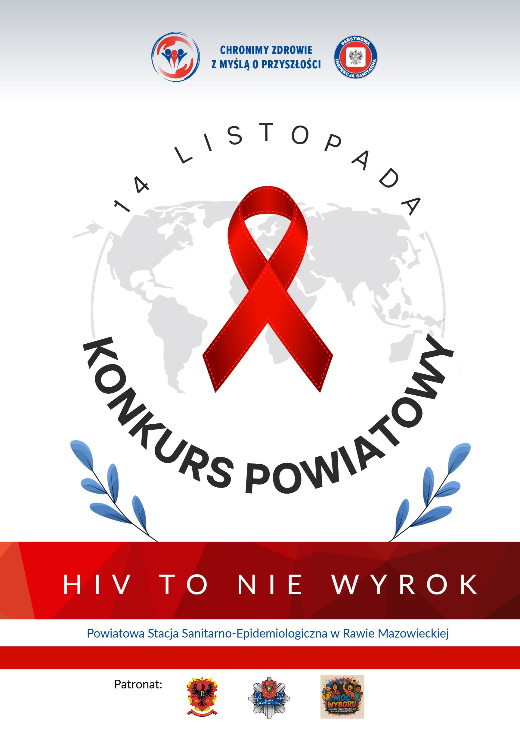 Państwowy Powiatowy Inspektor Sanitarny w Rawie Mazowieckiej zaprasza wszystkich uczniów szkół ponadpodstawowych z powiatu rawskiego do wzięcia udziału w Konkursie Wiedzy o HIV/AIDS 2025 pt.: "HIV TO NIE WYROK” organizowanym przez Powiatową Stację Sanitarno-Epidemiologiczną w Rawie Mazowieckiej.
