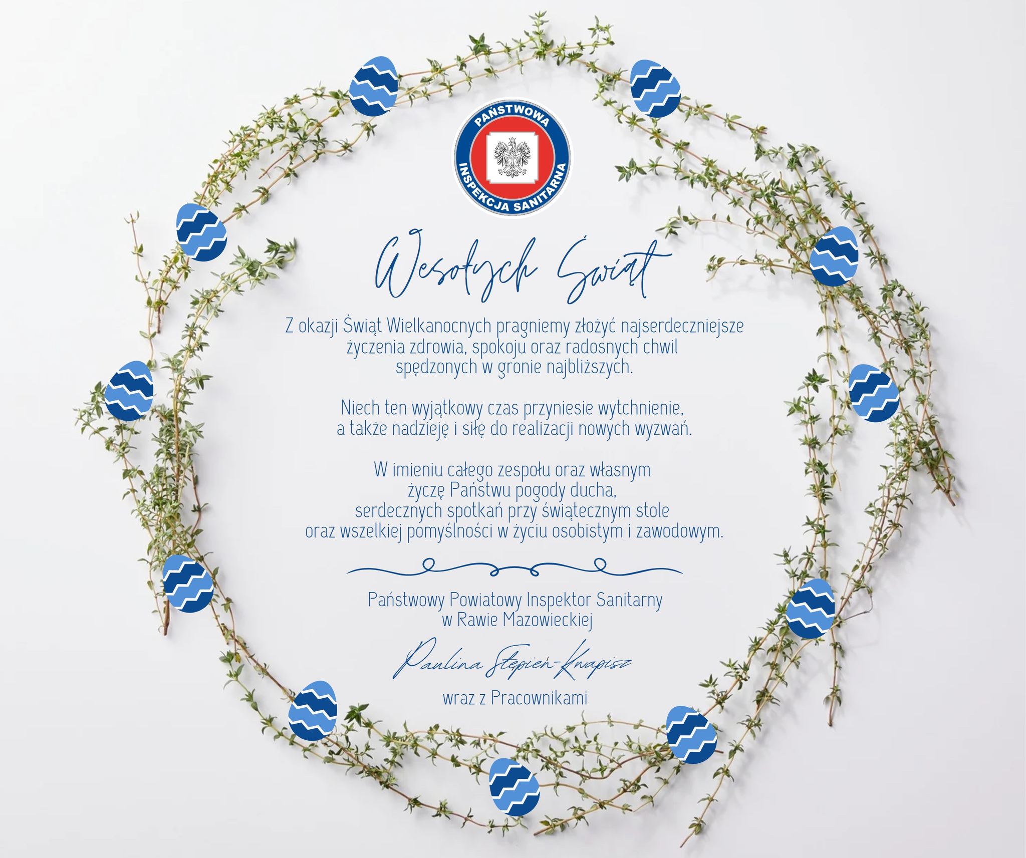 Życzenia Wielkanocne od Państwowego Powiatowego Inspektora Sanitarnego w Rawie Mazowieckiej