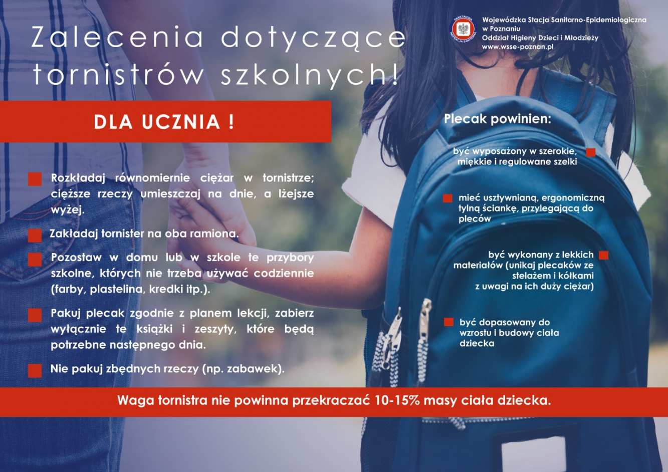 W trakcie przeprowadzanych pomiarów informowano uczniów o tym, że zbyt ciężki tornister może zaburzyć prawidłowy rozwój kręgosłupa. Zwracano uwagę, iż na wagę tornistra z zawartością nie składa się tylko waga pustego tornistra i waga podręczników, zeszytów i zeszytów ćwiczeń. Na wagę tą składają się także przybory szkolne, przybory do zajęć plastycznych, a także przedmioty, które nie są związane z nauką (zabawki, gry, telefony, parasolki, albumy ze zdjęciami, butelki z napojami, worek ze strojem do gimnastyki itp.). Bardzo często właśnie wszystkie te dodatkowo noszone przedmioty wpływają na przekroczenie właściwej wagi szkolnego tornistra/plecaka. Przekazano również ulotki o czym warto pamiętać i jak prawidłowo pakować tornister. Zachęcano uczniów, aby wykorzystywali możliwość przechowywania w szkole podręczników, zeszytów i przyborów plastycznych.