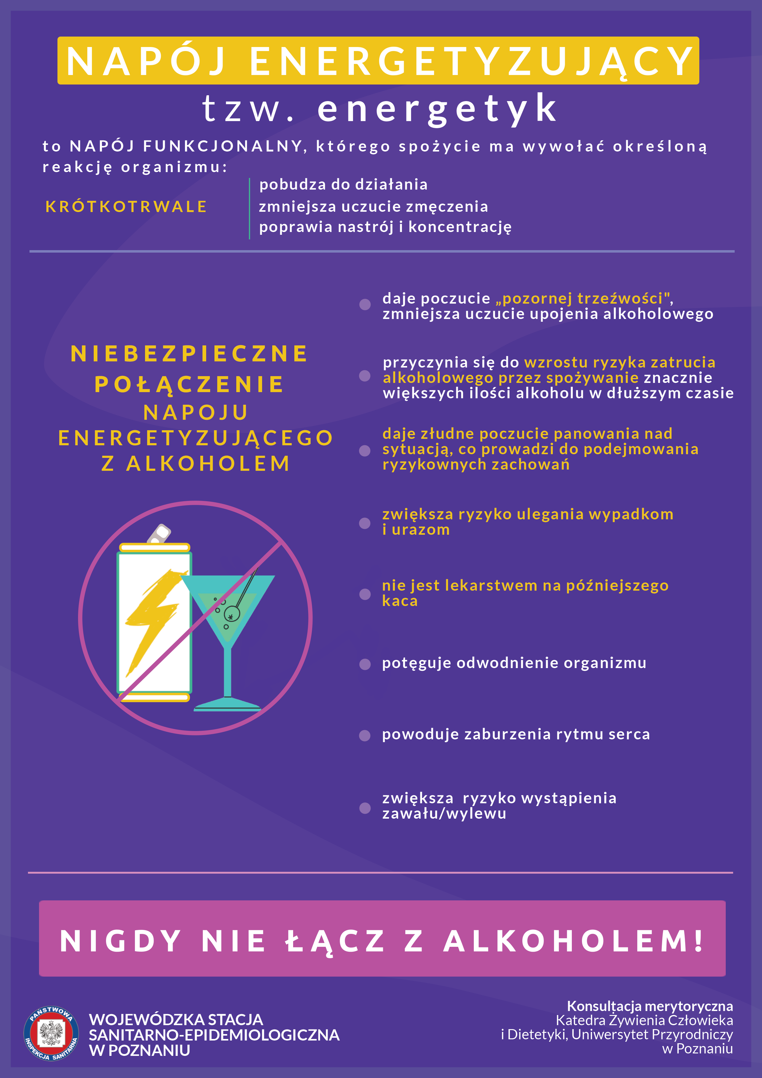 Chcesz dowiedzieć się więcej na temat napojów energetyzujących, zapoznaj się z infografikami opracowanymi przez pracowników Wojewódzkiej Stacji Sanitarno-Epidemiologicznej w Poznaniu