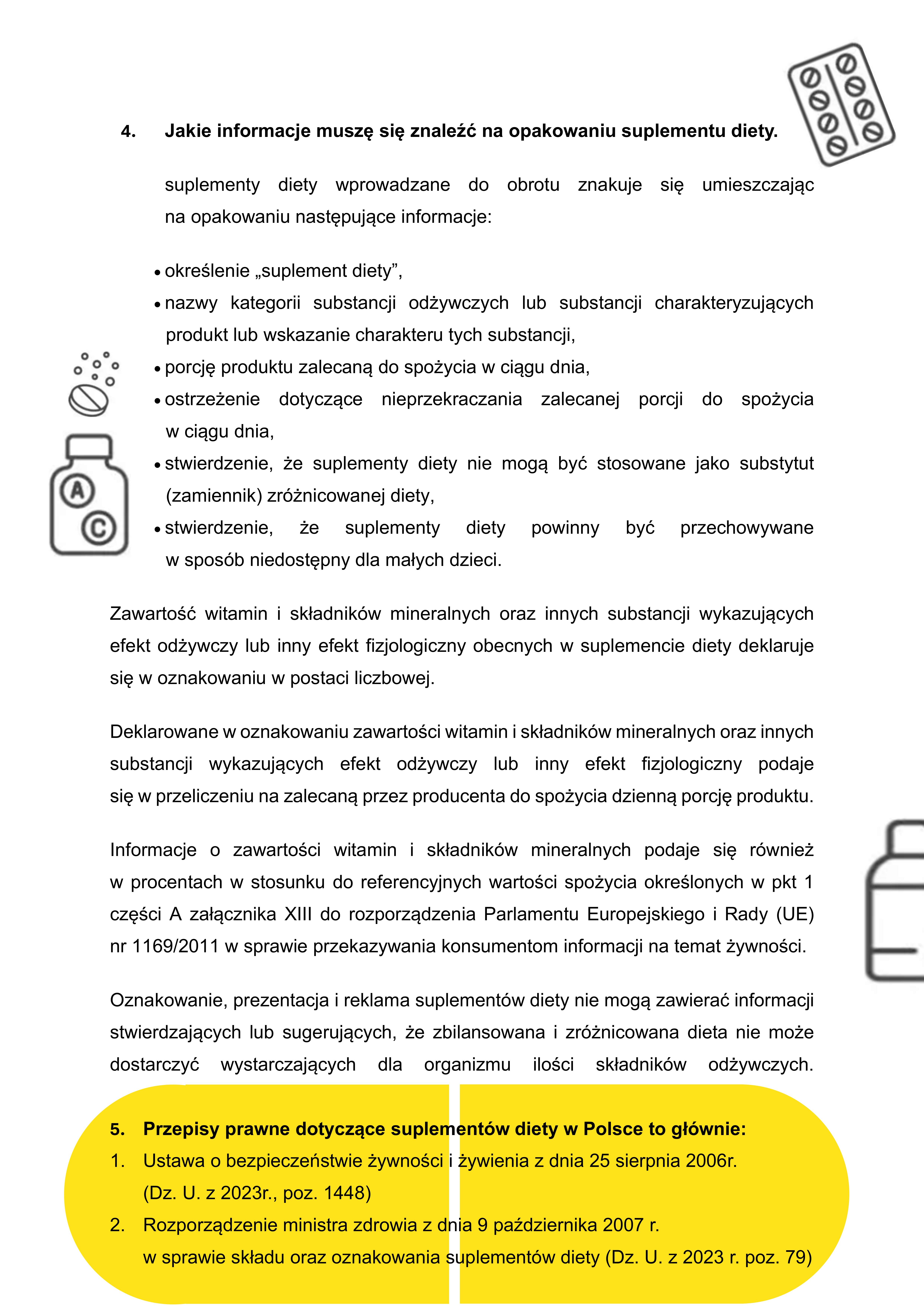 - Przepisy prawne dotyczące suplementów diety w Polsce to głównie: