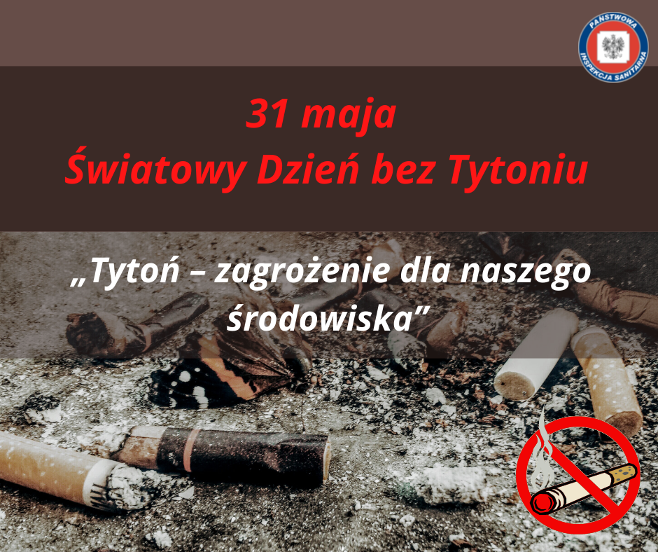 Co roku w dniu 31 maja obchodzony jest Światowy Dzień Bez Tytoniu, w tym roku będziemy go obchodzić po raz 35-ty. Inicjatywa ta powstała, żeby zwrócić uwagę na rosnącą liczbę osób używających wyroby tytoniowe i uświadomić społeczeństwo o negatywnych skutkach zdrowotnych związanych z nałogiem tytoniowym. Tegorocznym hasłem Światowego Dnia Bez Tytoniu jest „Tytoń: zagrożenie dla naszego środowiska”.