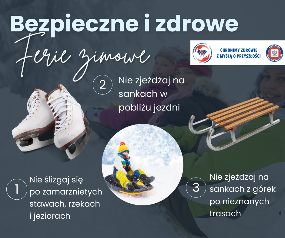 Czas ferii zimowych to szczególny okres dla dzieci, młodzieży, rodziców i nauczycieli. To chwile beztroskich zabaw nie tylko na śniegu, a towarzyszące wypoczynkowi odprężenie sprawia, że często zapominamy o podstawowych zasadach bezpieczeństwa.