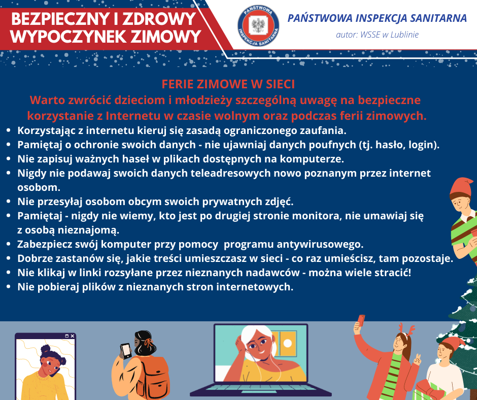 Warto zwrócić dzieciom i młodzieży szczególną uwagę na bezpieczne korzystanie z Internetu w czasie wolnym oraz podczas ferii zimowych.