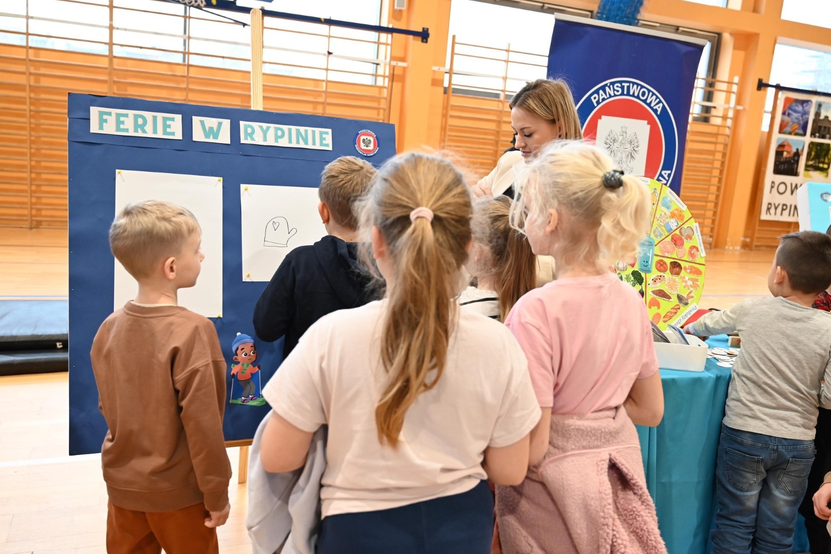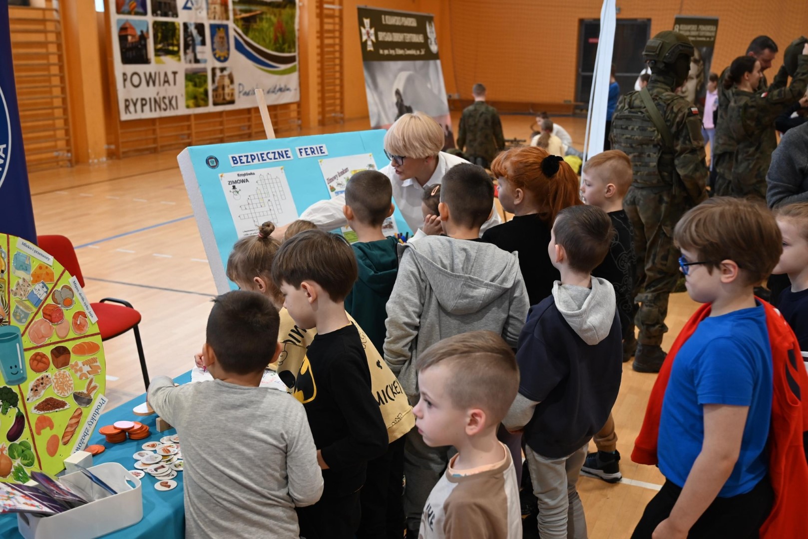 Organizowana przez Powiat Rypiński przy współpracy z Komendą Powiatową Policji, Wojskiem Obrony Terytorialnej, Komendą Powiatową PSP w Rypinie, Związkiem Ochotniczych Straży Pożarnych Oddział Powiatowy w Rypinie, Wodnym Ochotniczym Pogotowiem Ratunkowym w Lipnie i Powiatową Stacją Sanitarno-Epidemiologiczną w Rypinie, akcja bezpieczne ferie podzielona została na 2 dni. Pierwszego dnia treści profilaktyczne dla dzieci młodszych szkół podstawowych powiatu rypińskiego. Nauka przez zabawę - taki cel przyświecał nam dnia pierwszego. Poniżej fotorelacja z dnia pierwszego. Dzień drugi dodamy niebawem.
